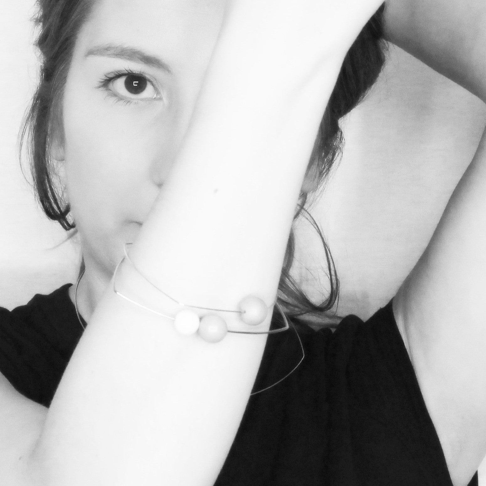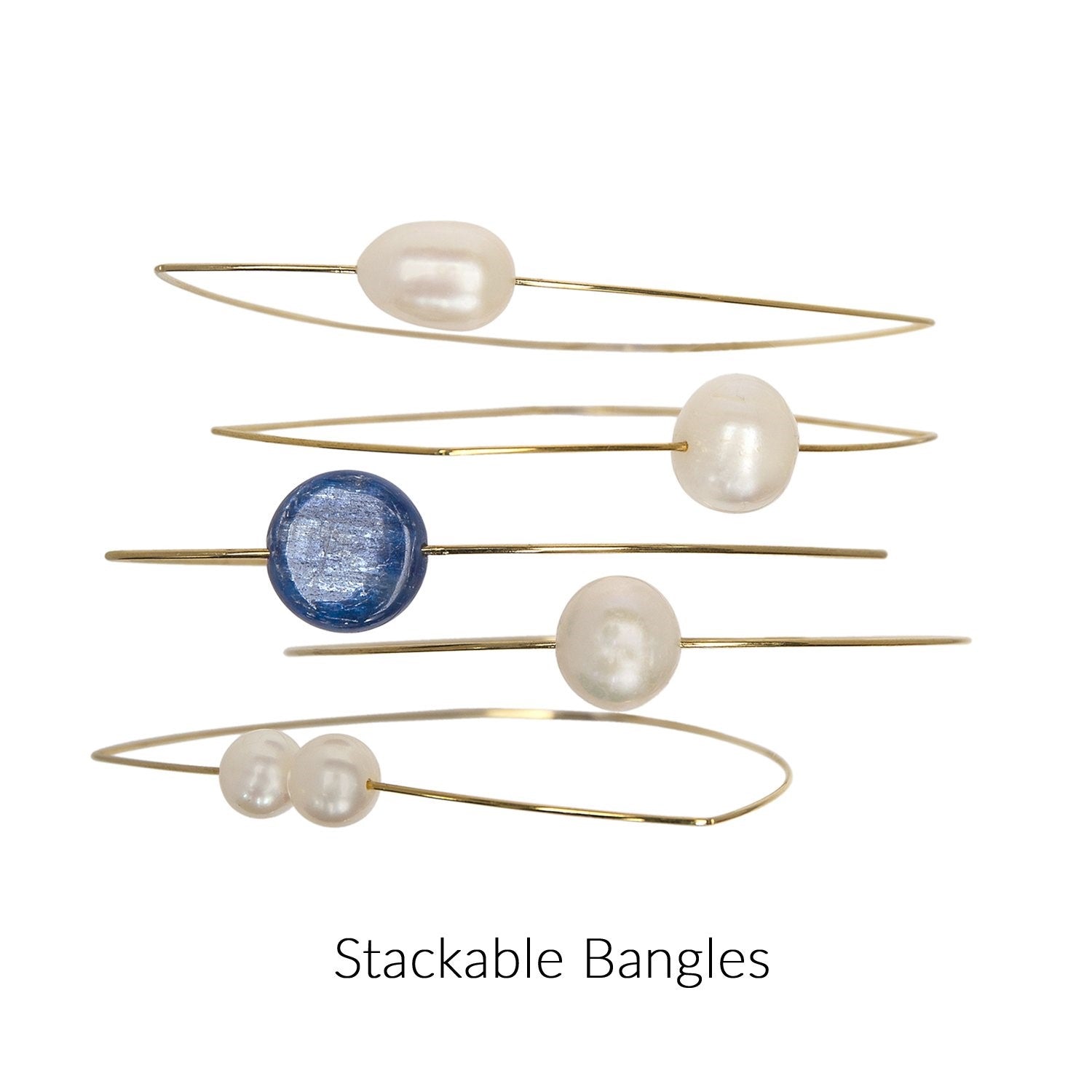 A hand-cut gem and a pearl sit together on this rounded square wire bangle. Absolutely lovely on its own or wear stacked with our other bangles to create some stylish shapes!