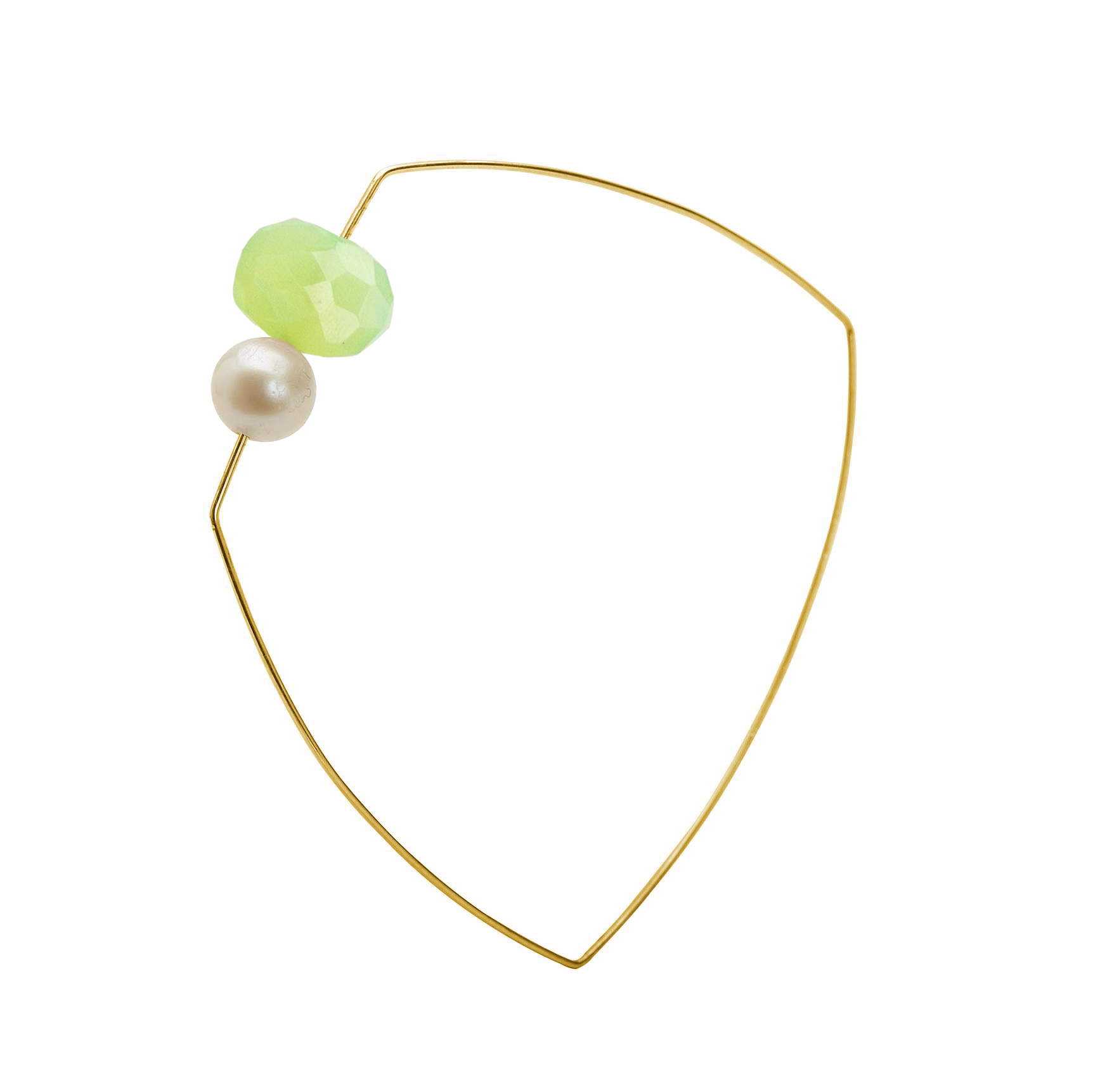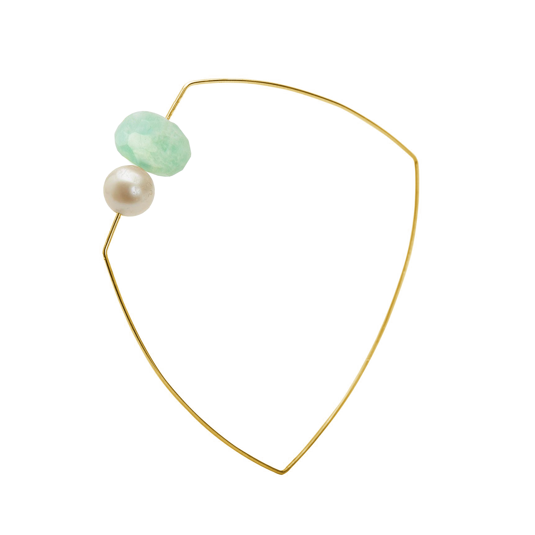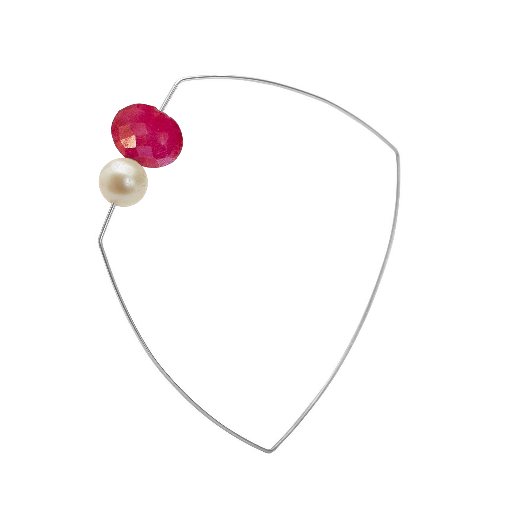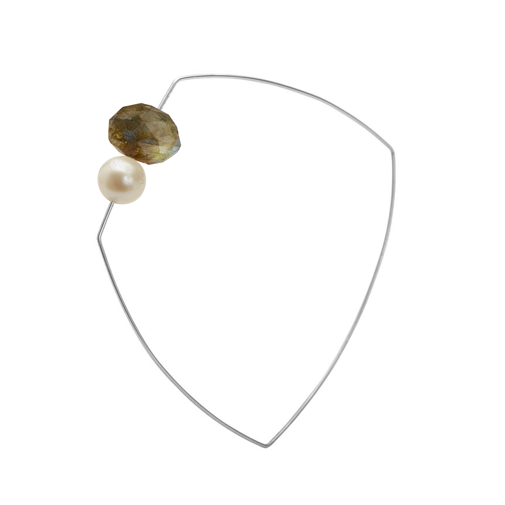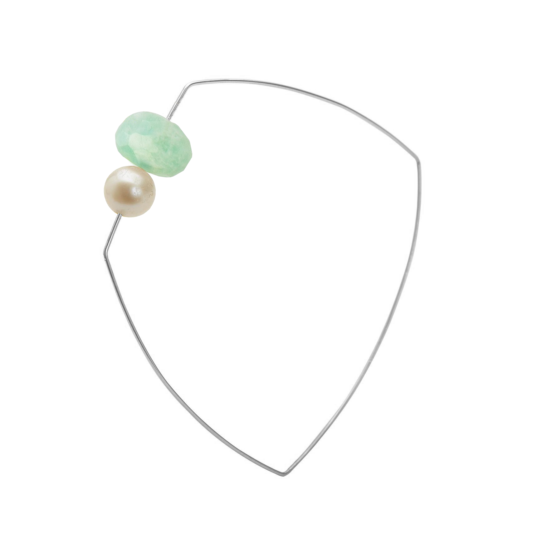 Asymmetric Square Bangle with White Freshwater Pearl and hand-cut precious gemstone