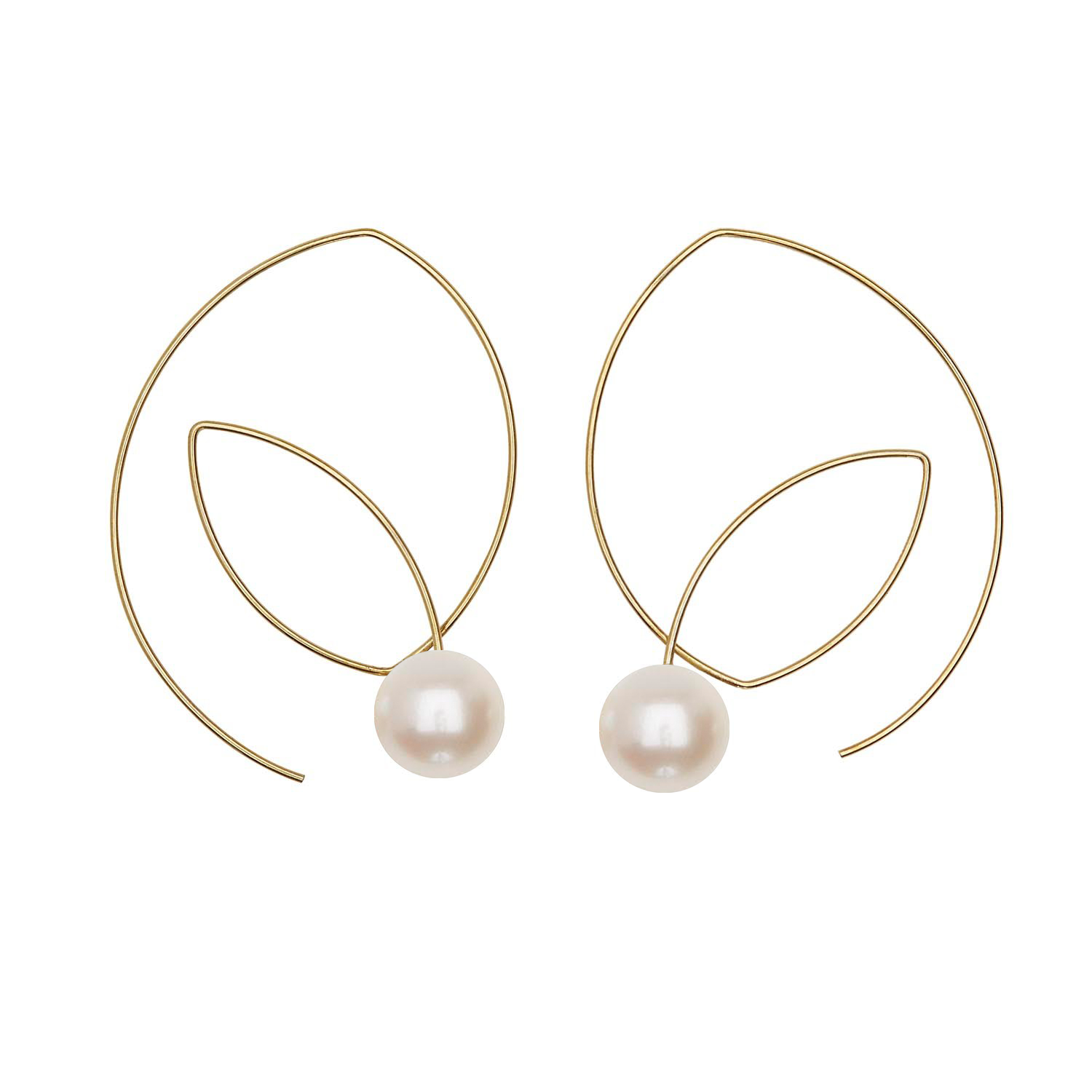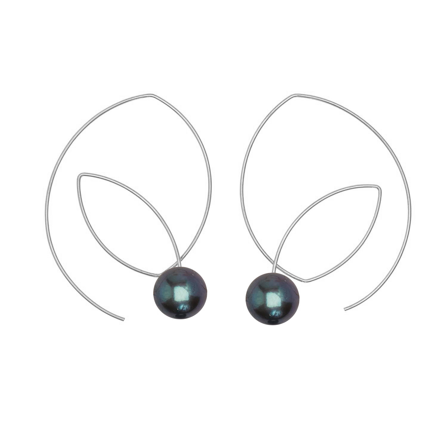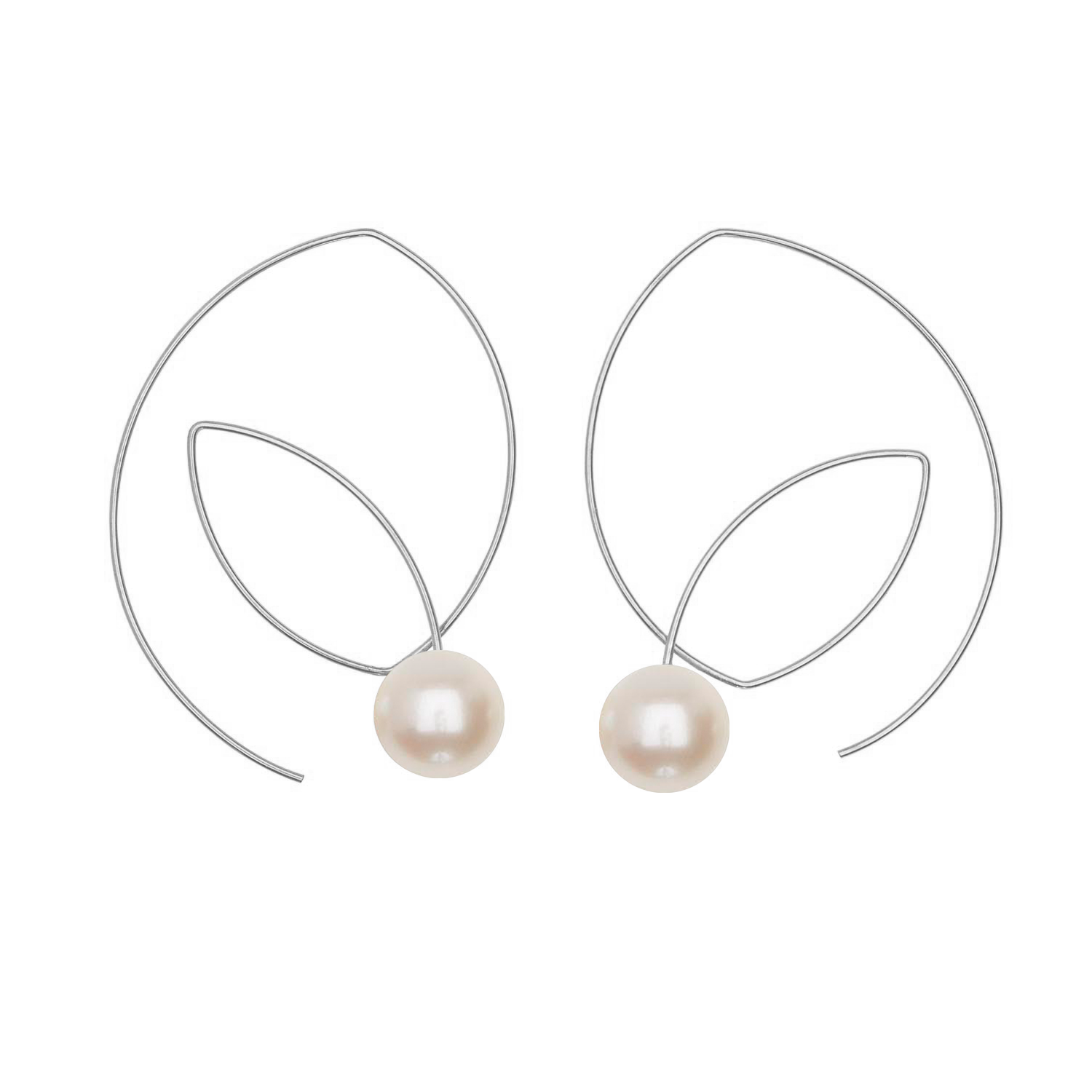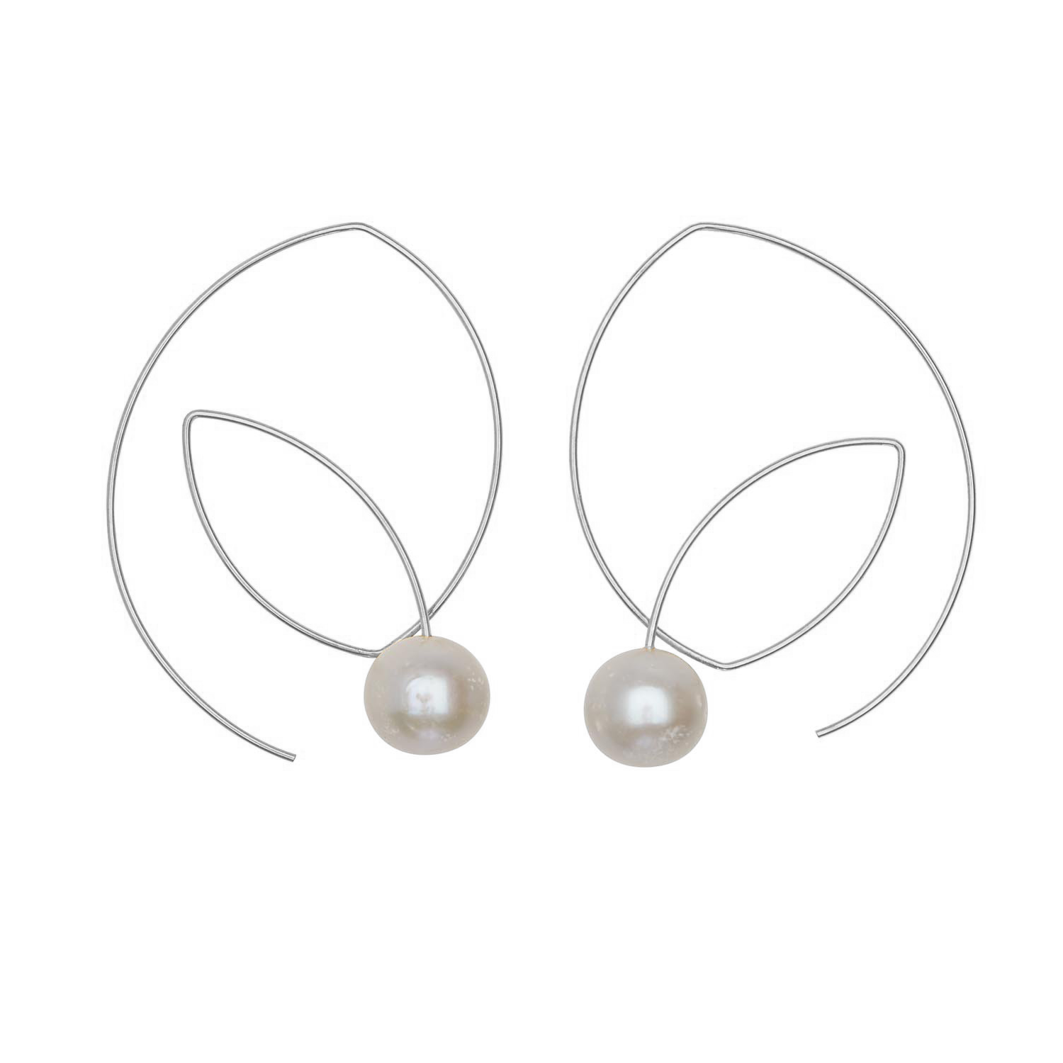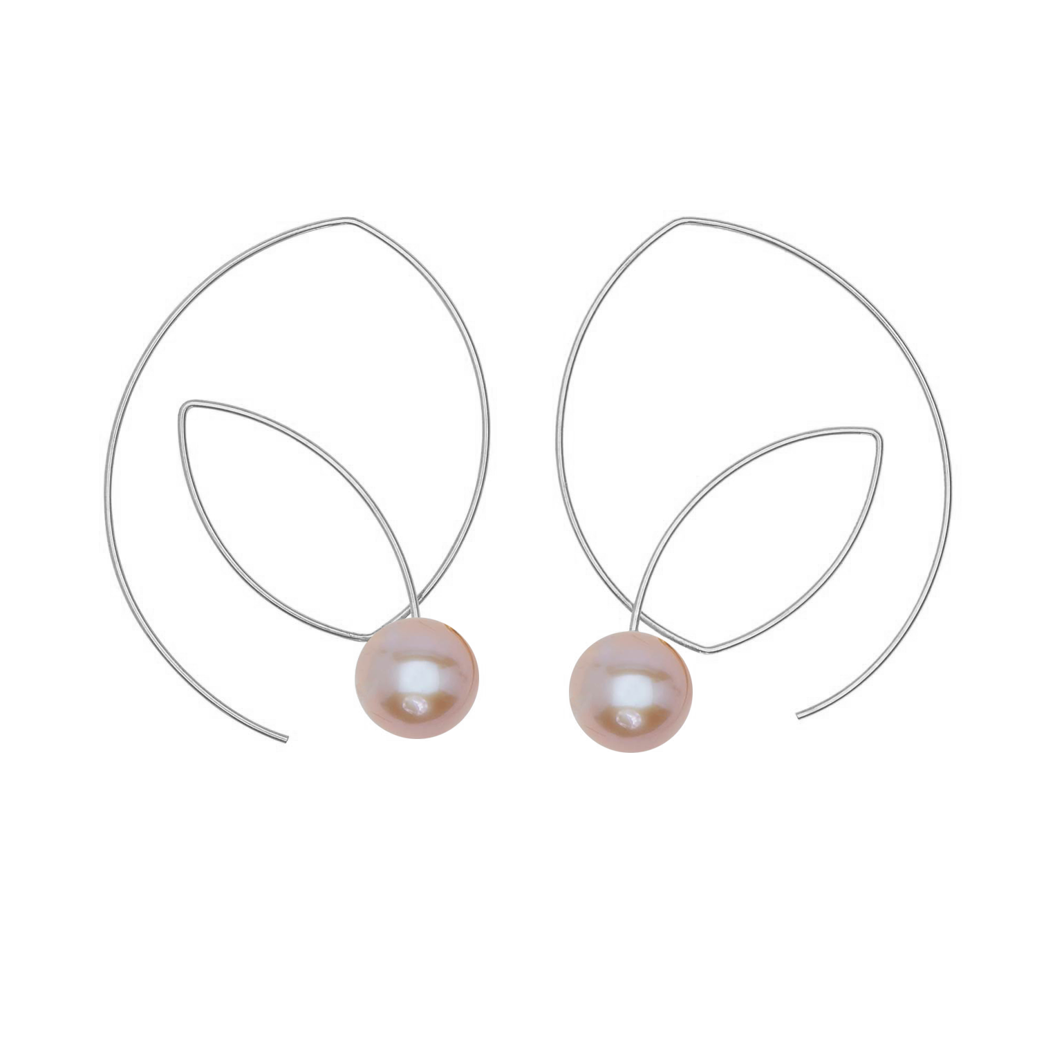 Large Angled Loop Earrings with Round Natural Freshwater Pearls with colour options