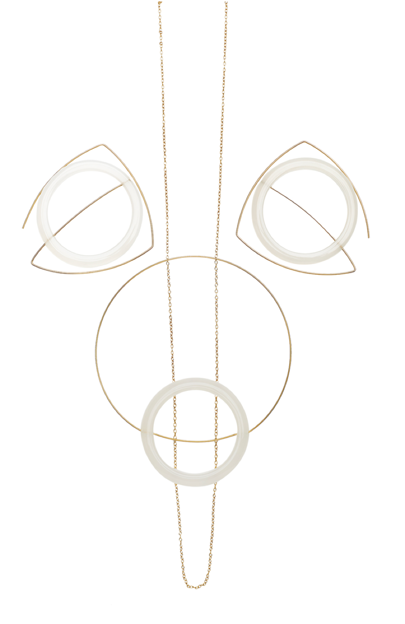 We have sourced these fantastic circular slices of white agate to create large circle chain necklace and minimalist pieces of jewellery.