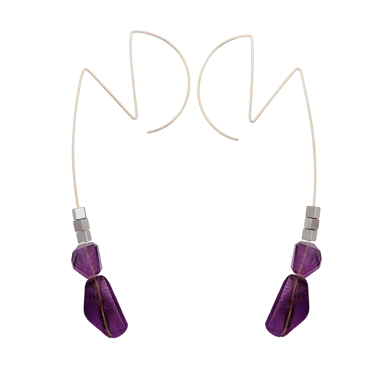 Long Ziggy Stardust inspired Earrings with hand-cut Gemstones