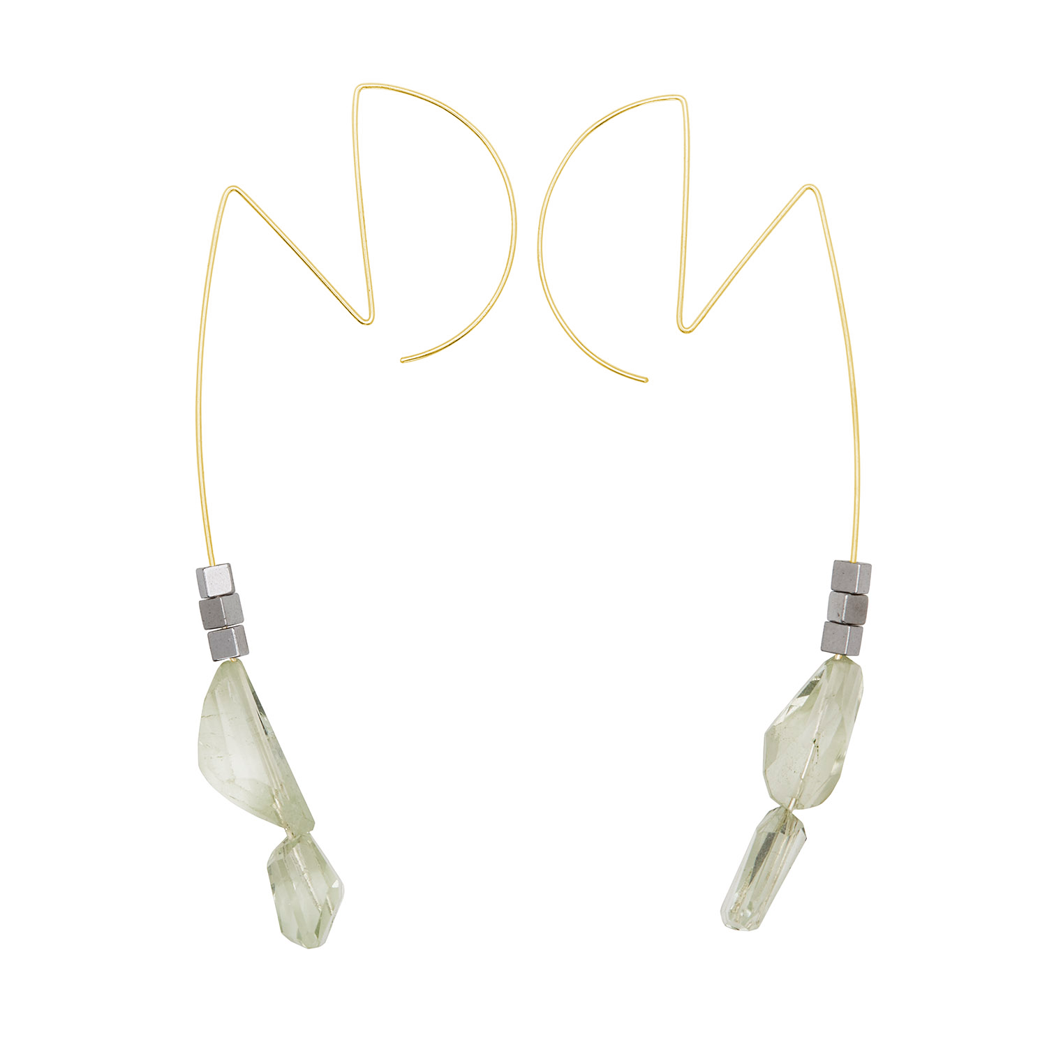 These earrings measure 8cm in length. The green amethyst measure between 10mm x 15mm and 5mm x 10mm and the hematite measure 2mm.