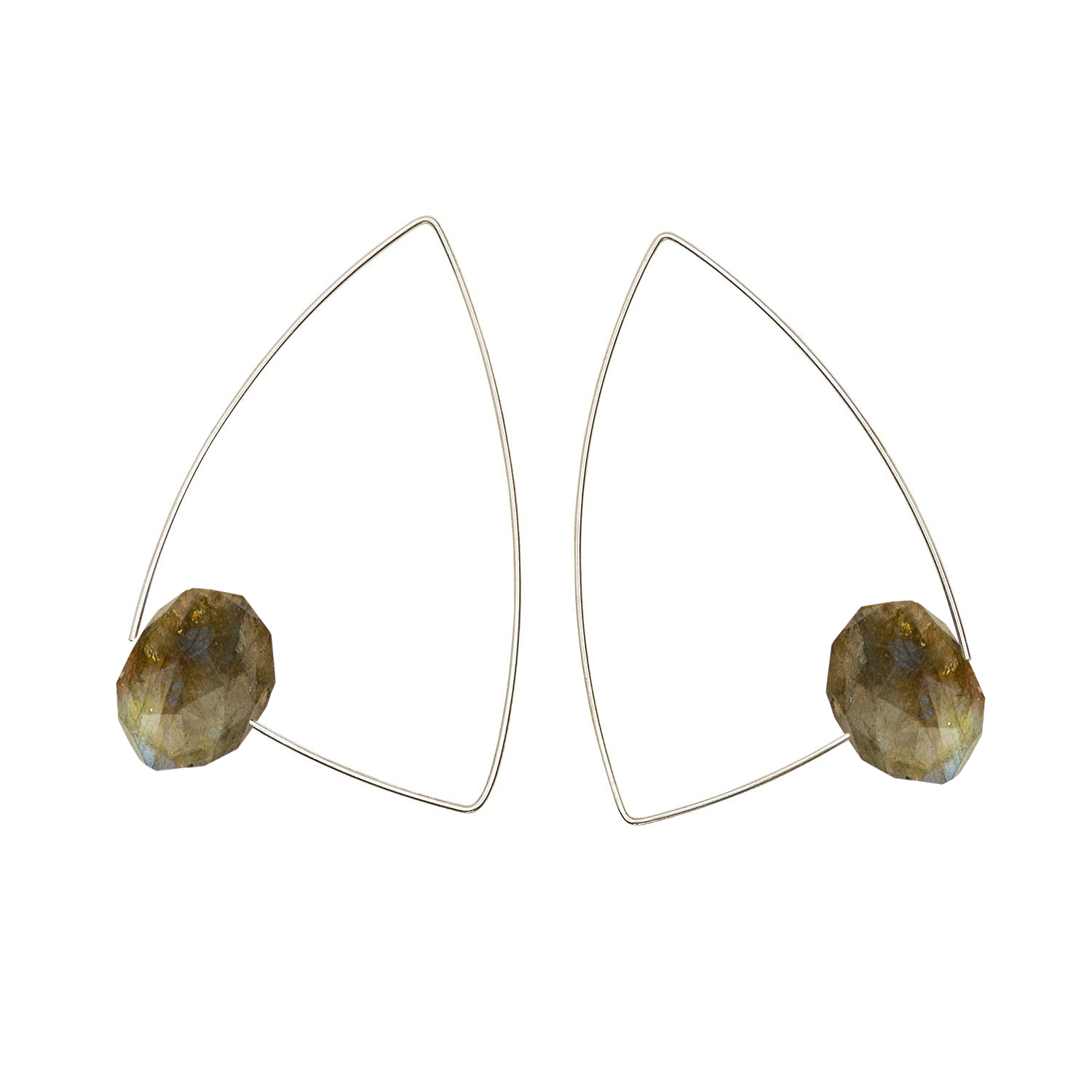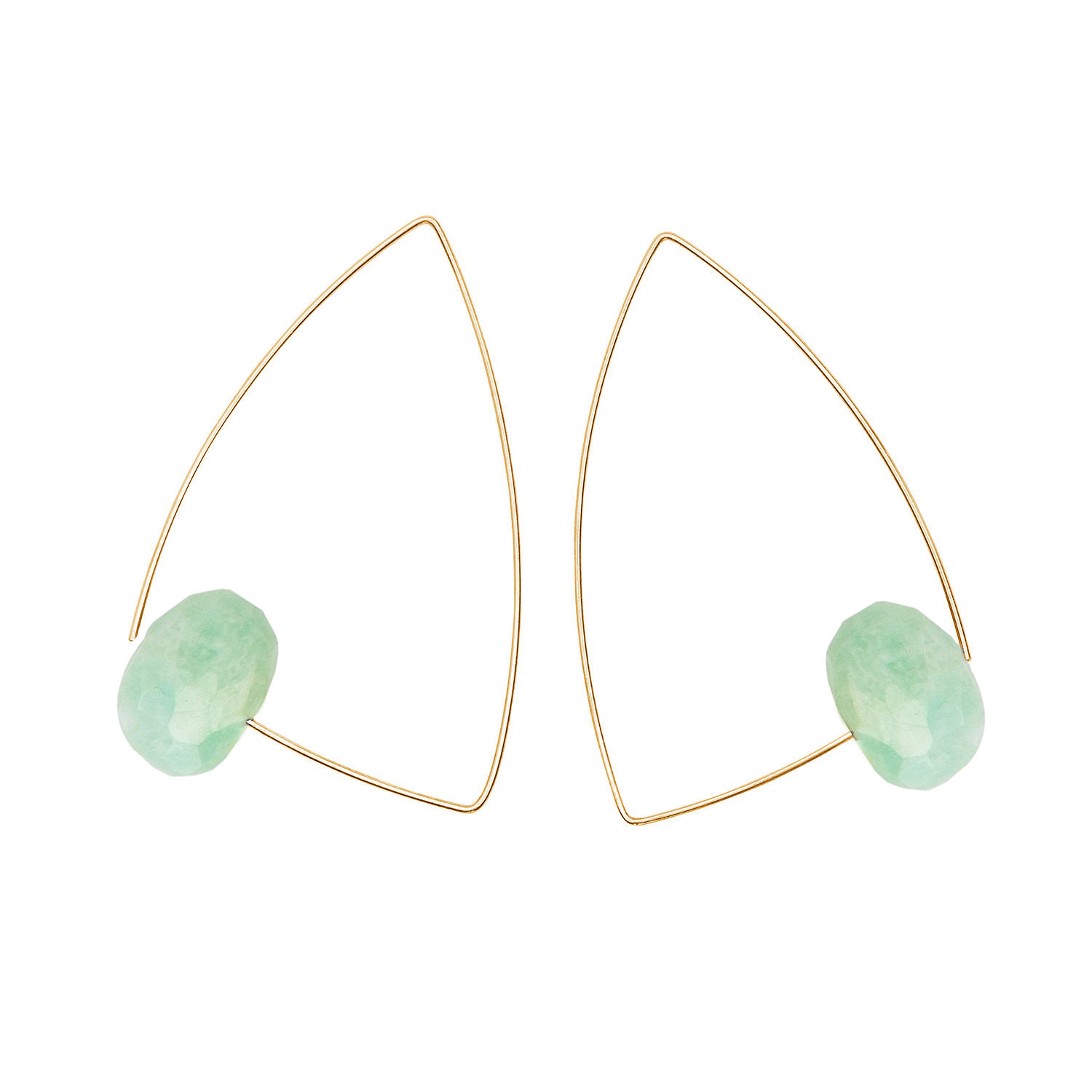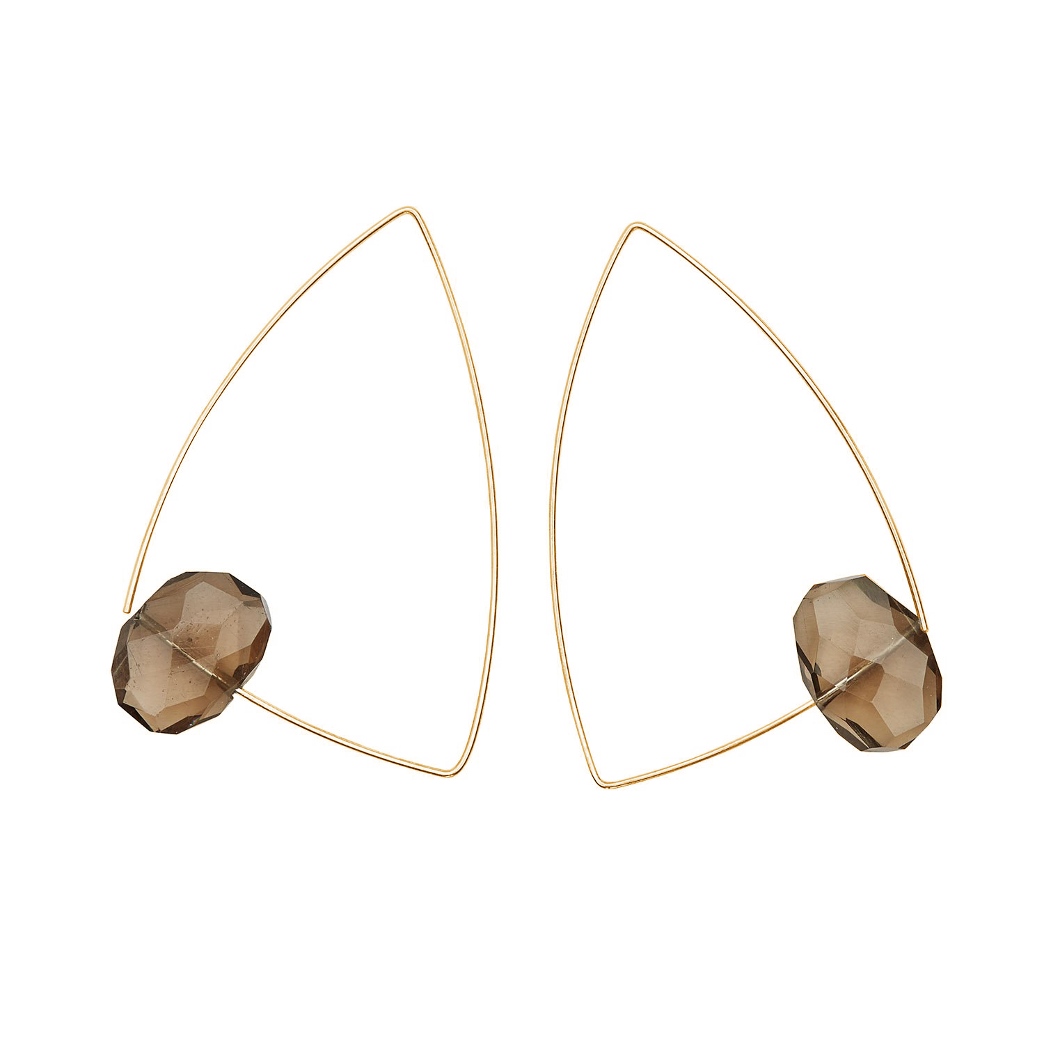 Gorgeous hand-cut gems sit at the ends of these large triangular shaped earrings for a muted and minimal look.