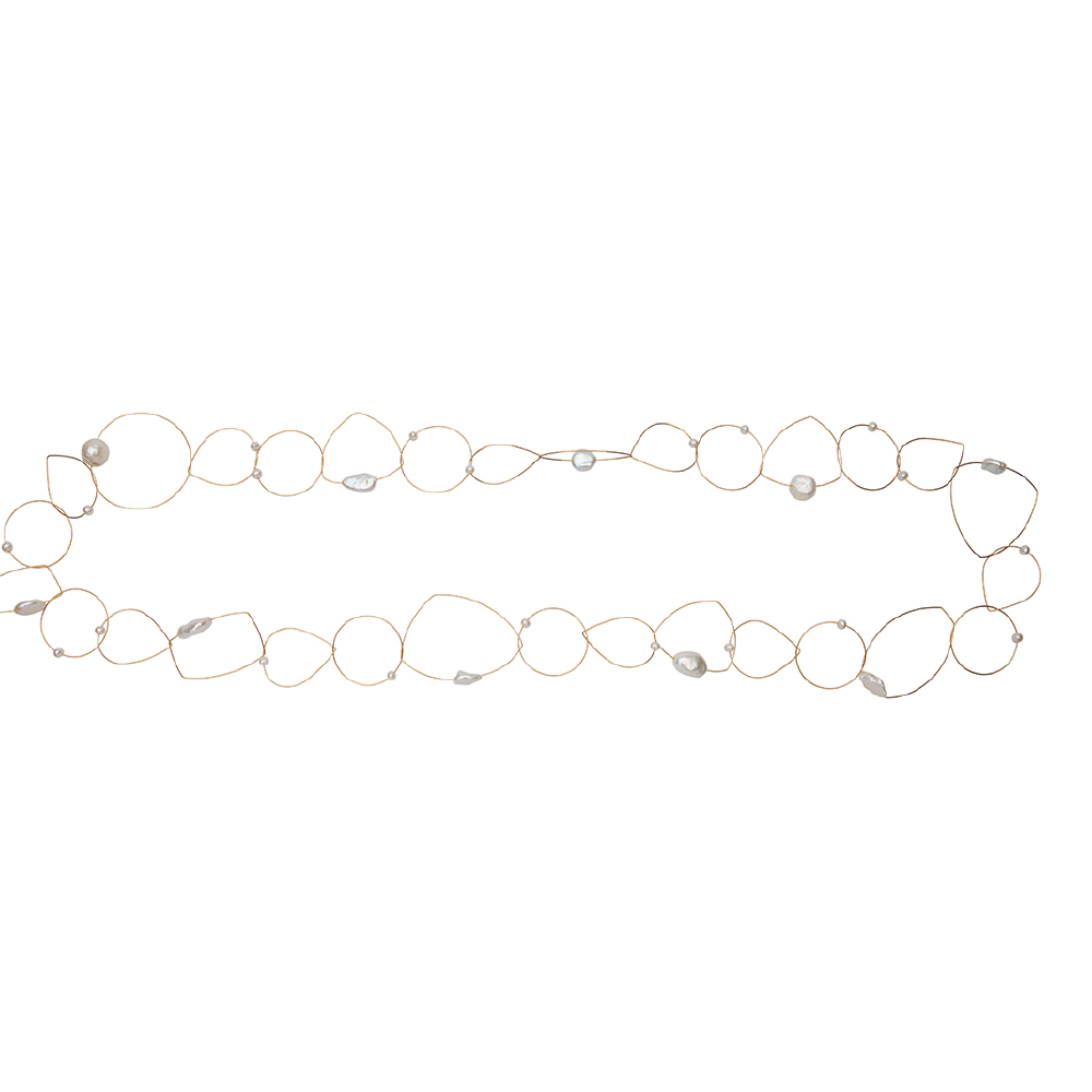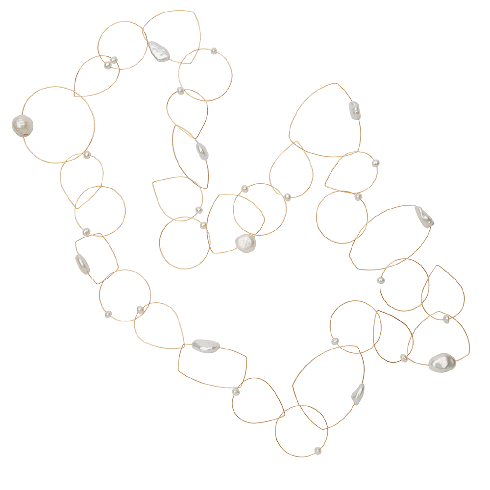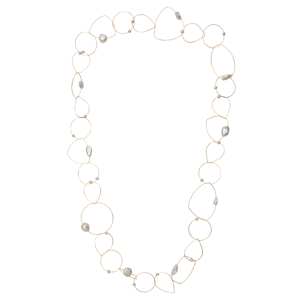 Lustrous white pearls have been scattered across angular shapes to create a classic piece of jewellery. Wear this necklace long or double up to make a shorter two strand necklace. A great staple to add to your wardrobe! This can be ordered as a bespoke piece with your choice of colours, shapes and sizes of pearls.
