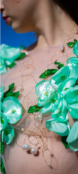 This necklace is 40" to 50" long and can be doubled or worn in a sculptural way. See model image.