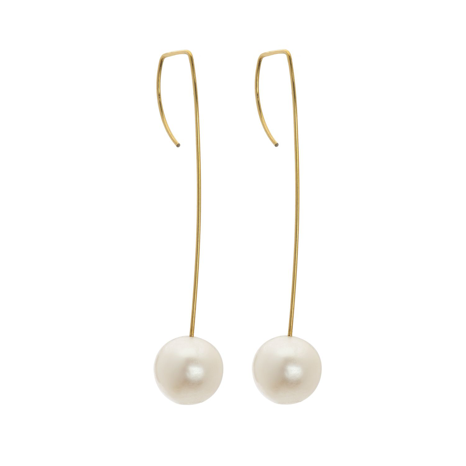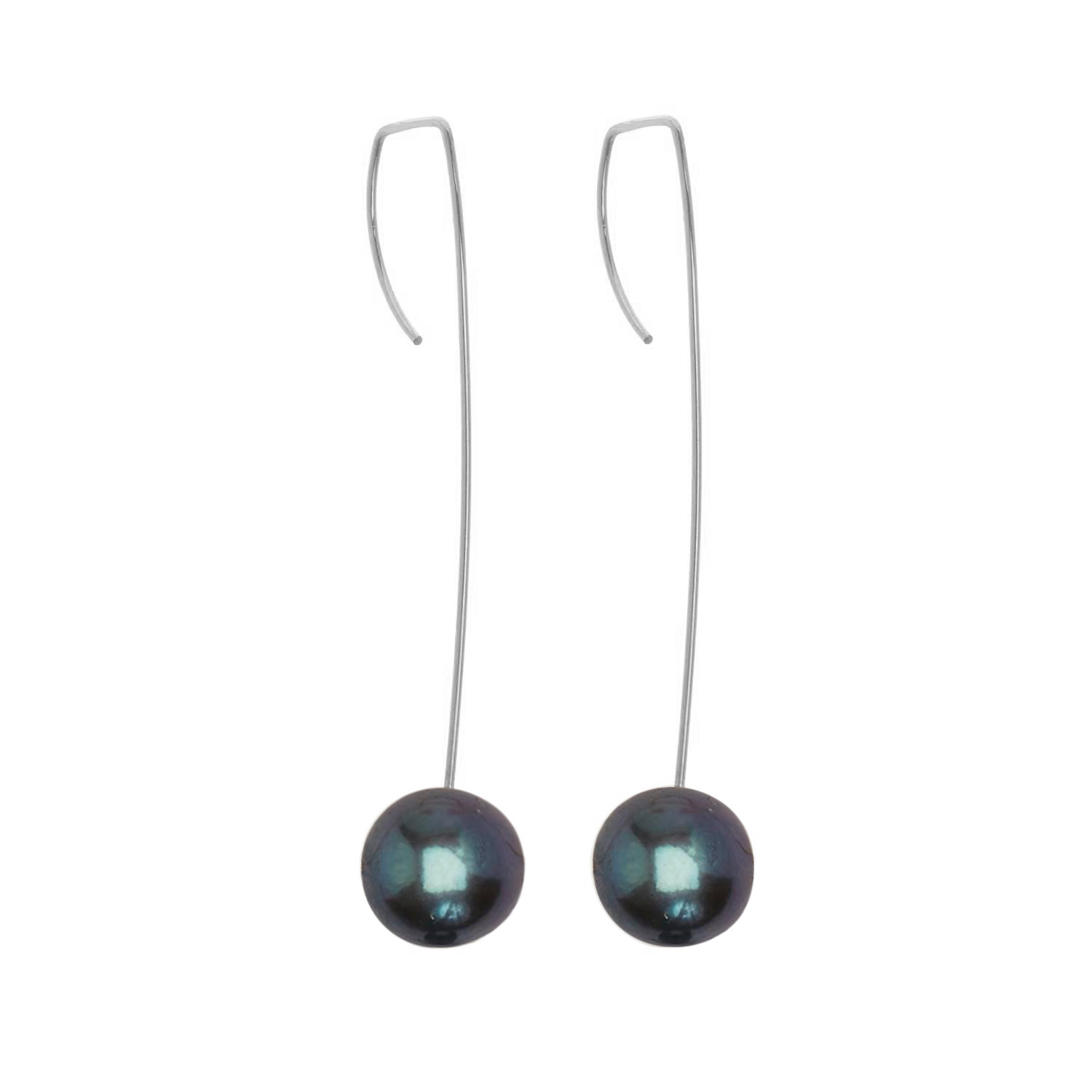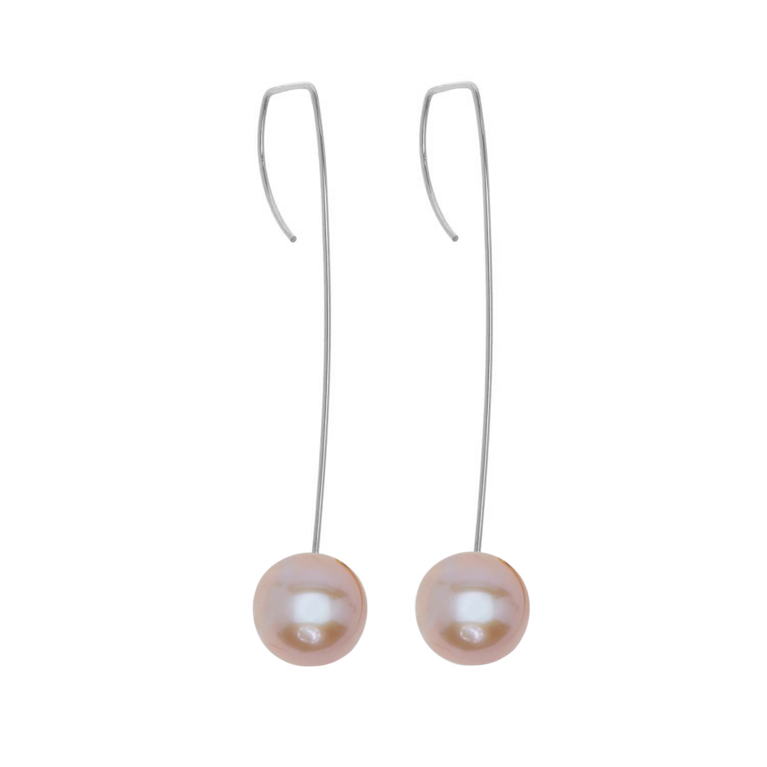 Long Straight Drop Earrings with Round Freshwater Pearls