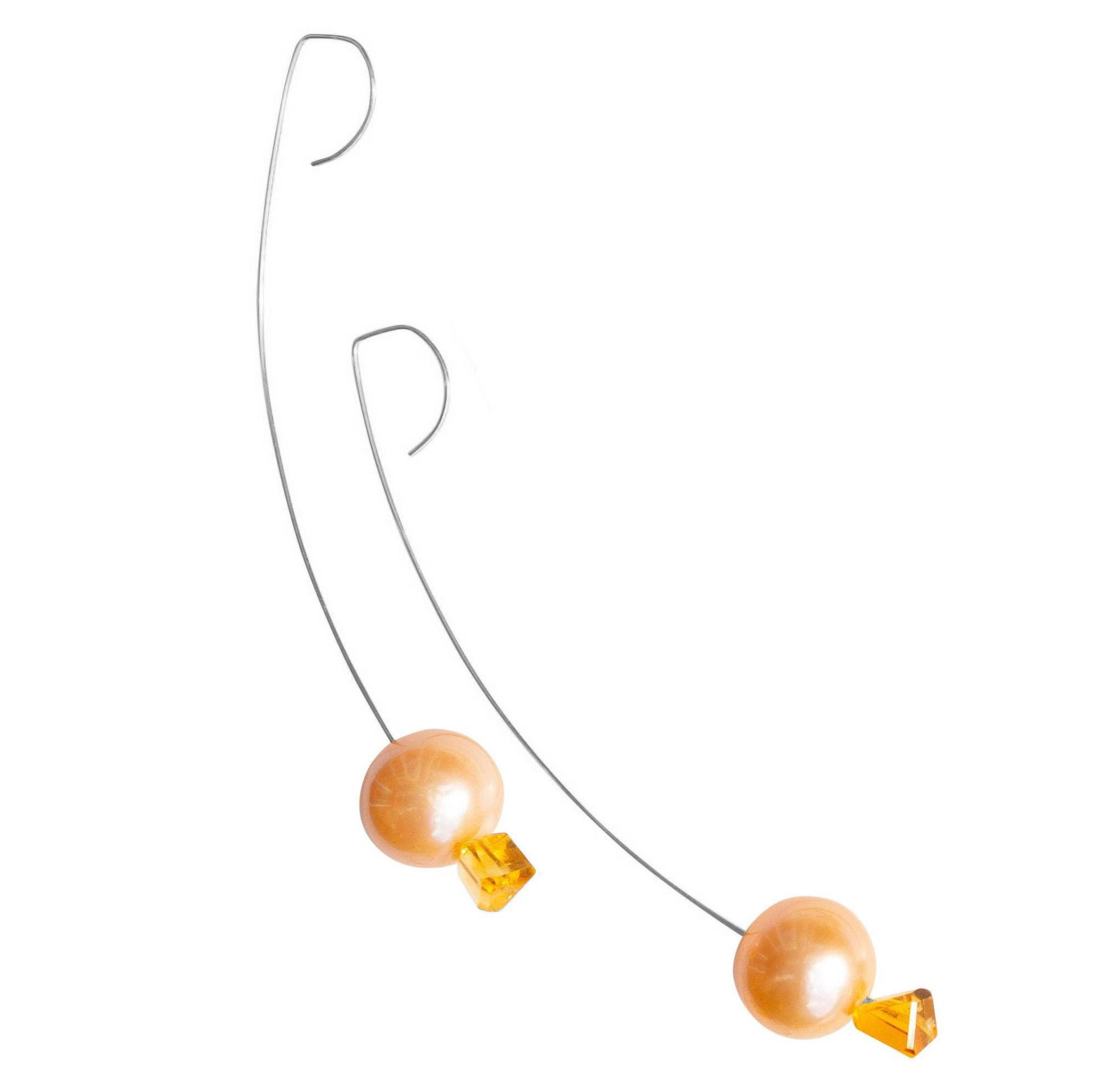Medium Drop Earrings with Citrine Gemstone and Freshwater Pearls