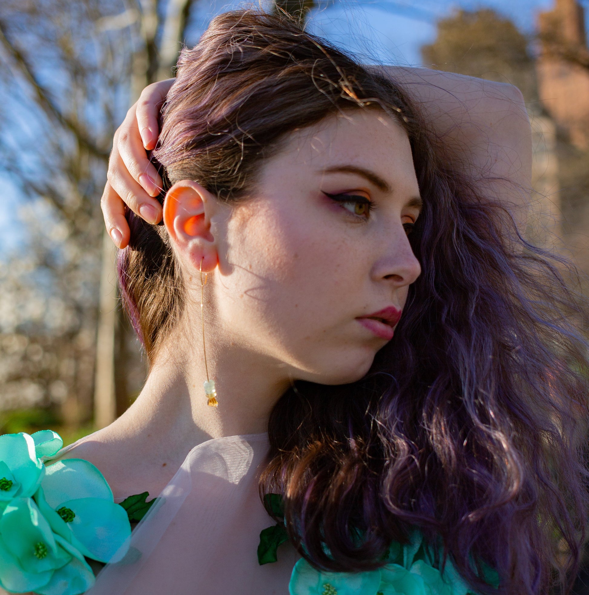 Our straight drop style earrings are the perfect minimal shape to show off these gorgeous gems – perfect for brightening a rainy day!