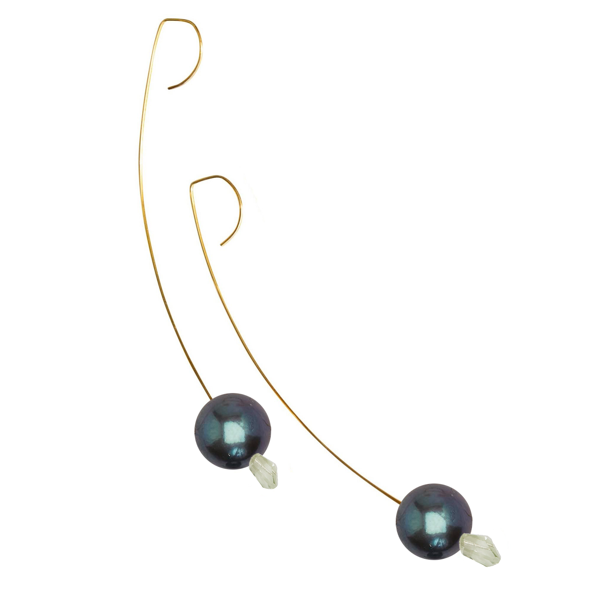 Medium Drop Earrings with Pale Green Amethyst Gemstone and Freshwater Pearls