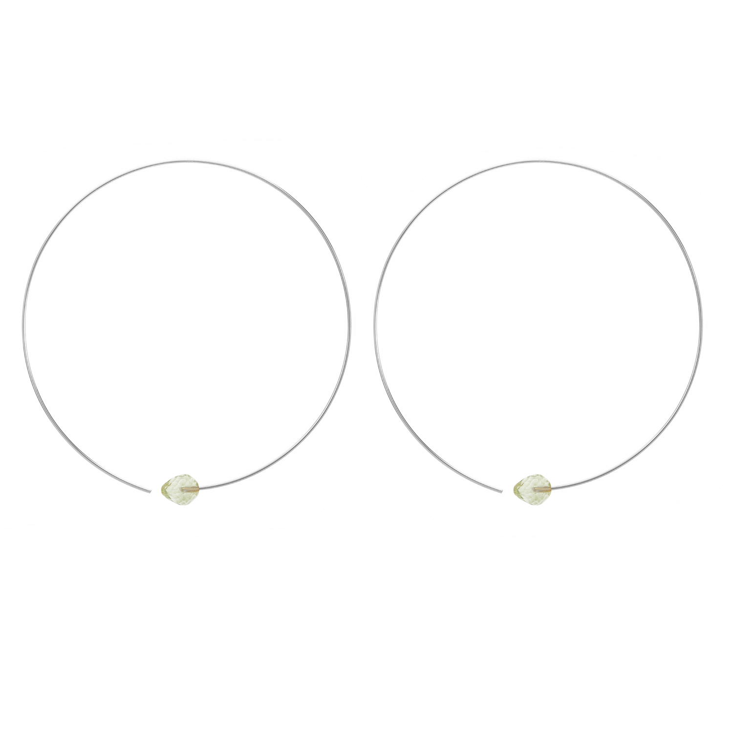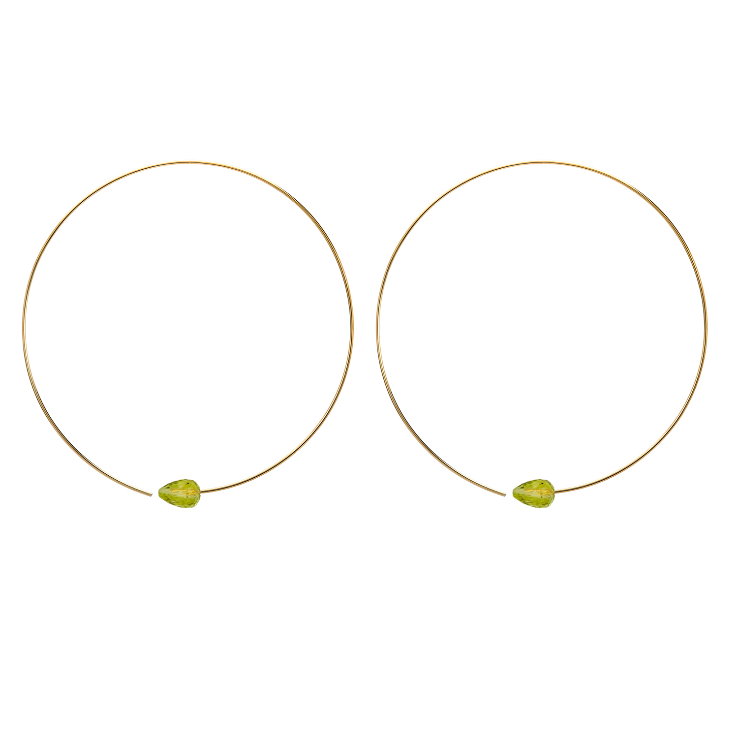 These delicate faceted pear shaped gemstones showcase a glass like lustre and its gorgeous tones of colours. Beautifully poised centrally on these hoop, a great stylish pair of earrings.
