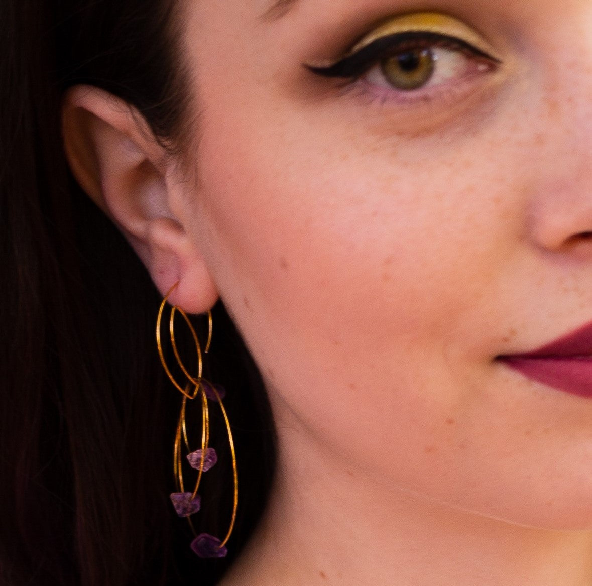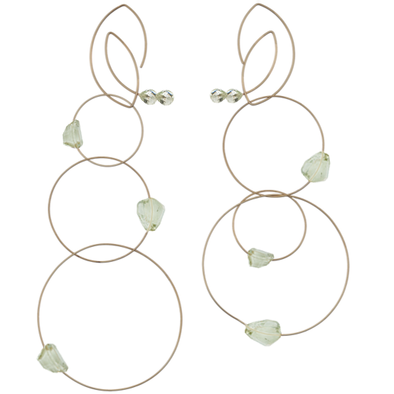A glamorous pair of our 'Morph It' earrings which can be worn in a multitude of positions – wear just the top earrings with round gem spheres for a simple look or pile on the wire shapes to showcase all the circular intertwined shapes. A perfect day to night pair of earrings!