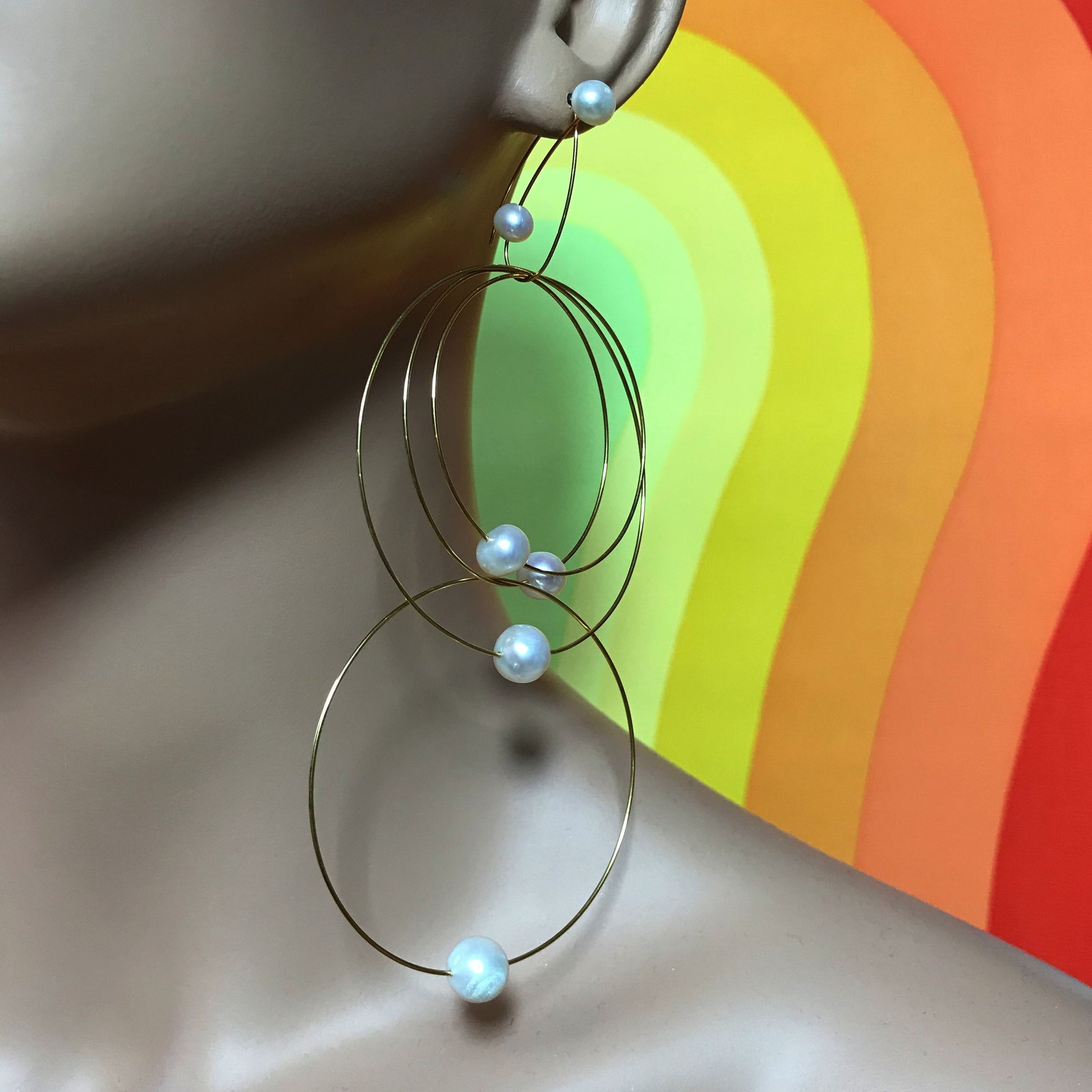'Morph It' means that you can wear these earrings in a multitude of ways. See photos for different position options. They can make a statement with the large fine hoop shapes doubled or dropped down extra long or can also be worn with no drops added as an unusual pair of 'lobe hugging' earrings (way more interesting than studs) depending on your mood and your style!