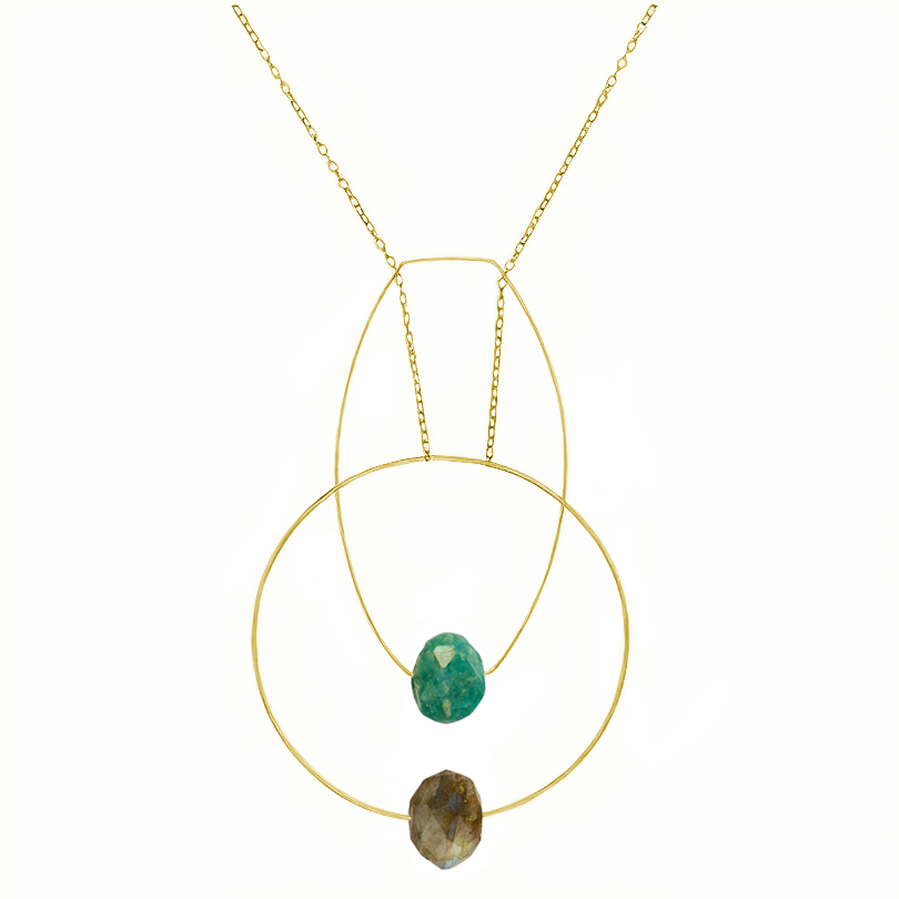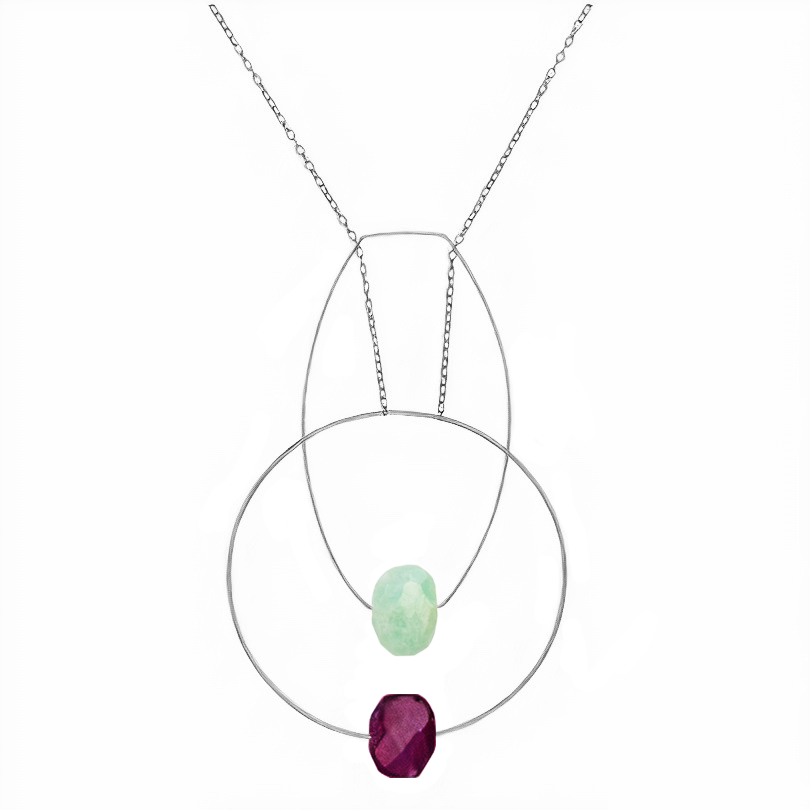 Multi Shape Pendant Necklace with Hand-Cut Gems (choices of colour combination)