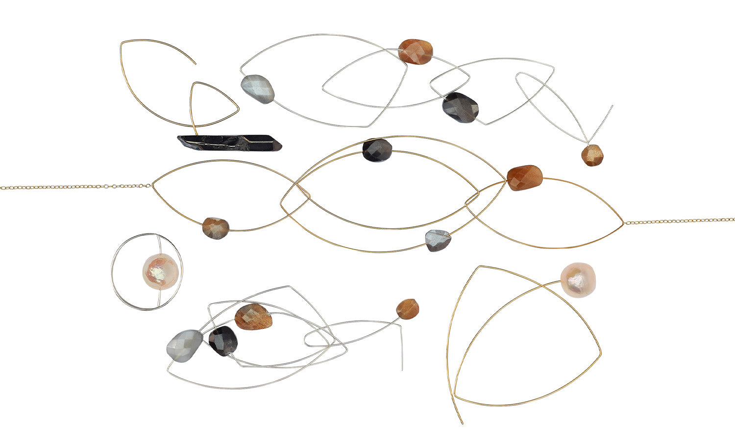 A glamorous pair of our multi wear earrings - wear just the long autumn-hewed moonstone earring for a simple look or pile on the wire shapes to showcase the tri-coloured gemstones. A perfect day to night pair of earrings!