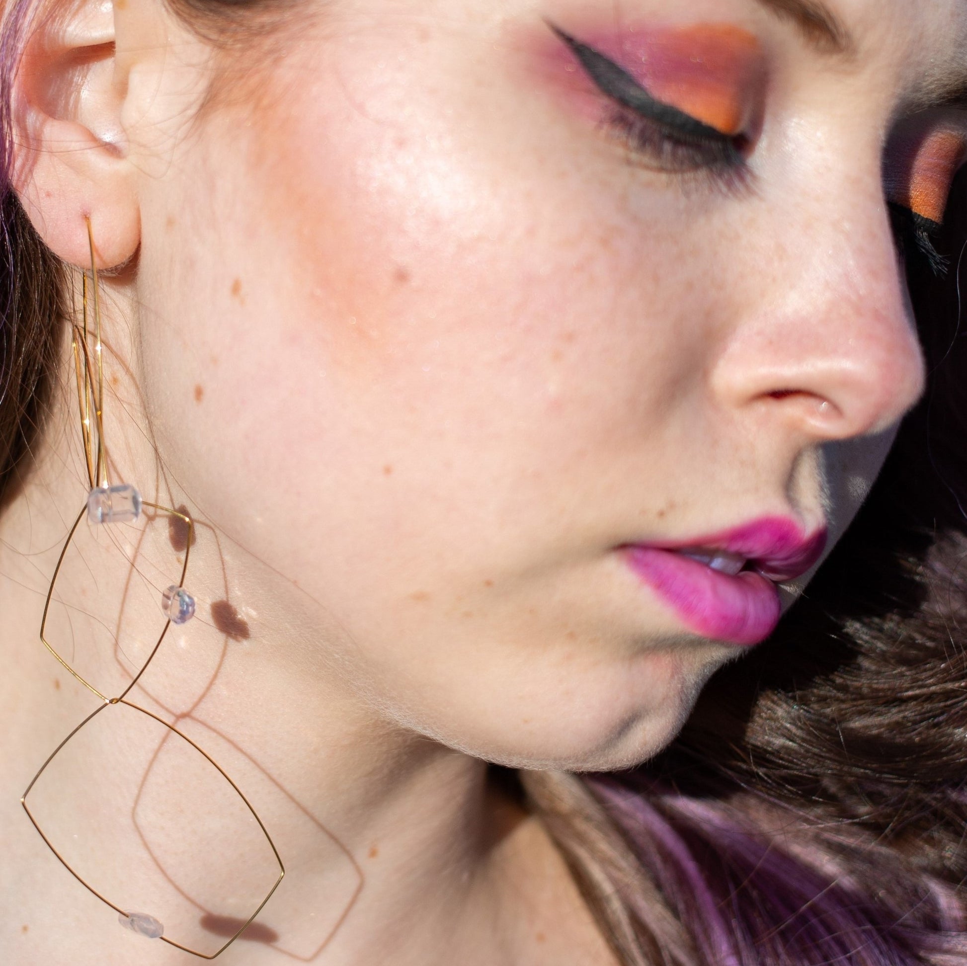 These statement triangle shaped gemstone earrings can also be worn as a sweet pair of mini hoops and a dozen different positions to create very different looks depending on your mood, outfit and your style!