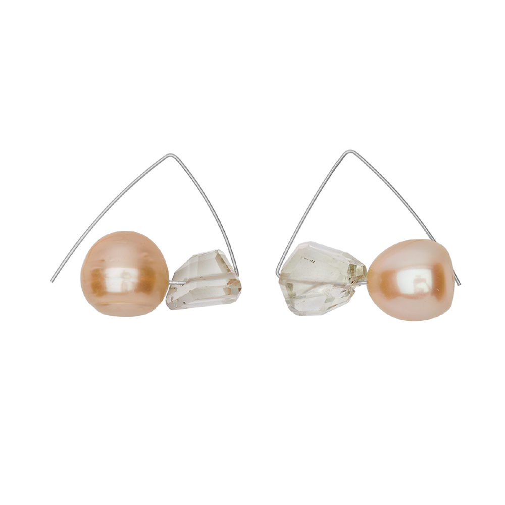 Petite Triangle Lobe Huggers with Round Freshwater Pearls and Green Amethyst