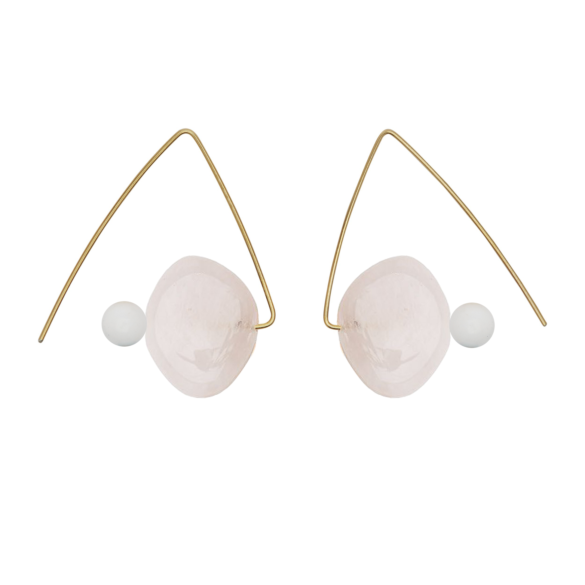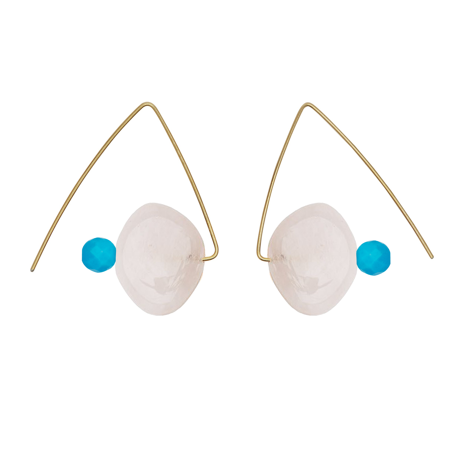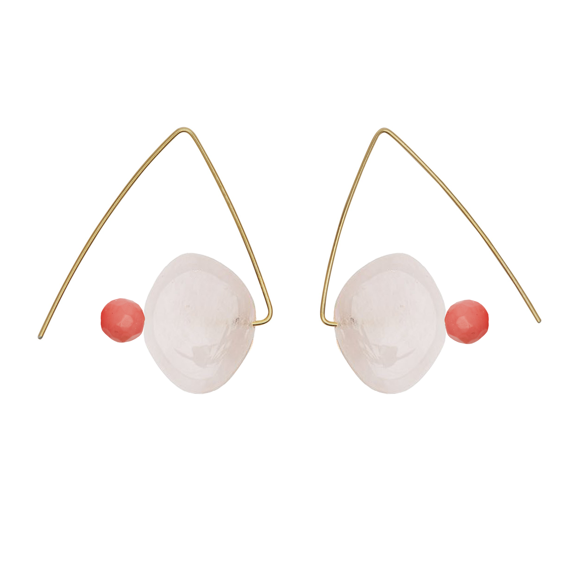 Petite Triangle Lobe Huggers with Morganite Small Oval and Round Beads