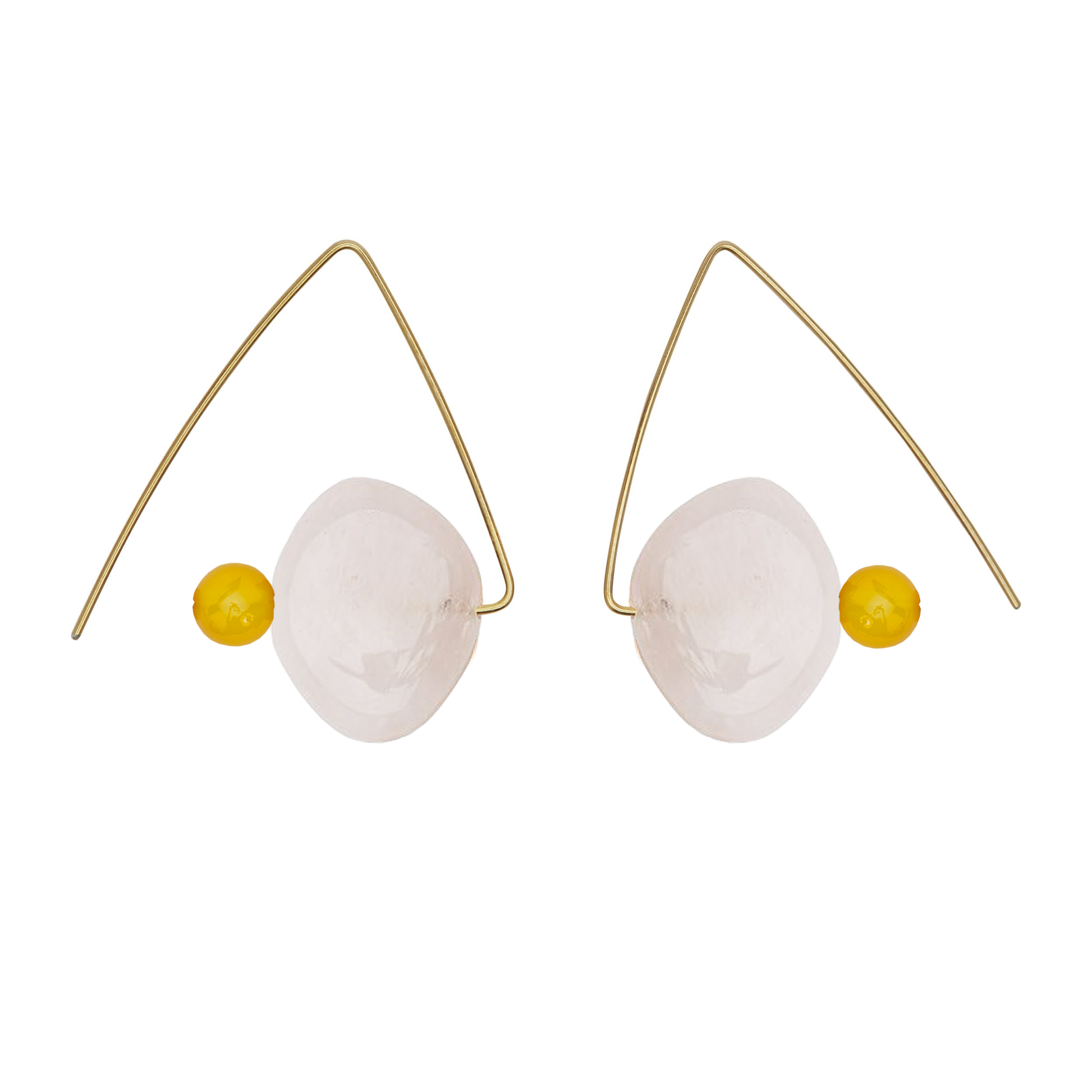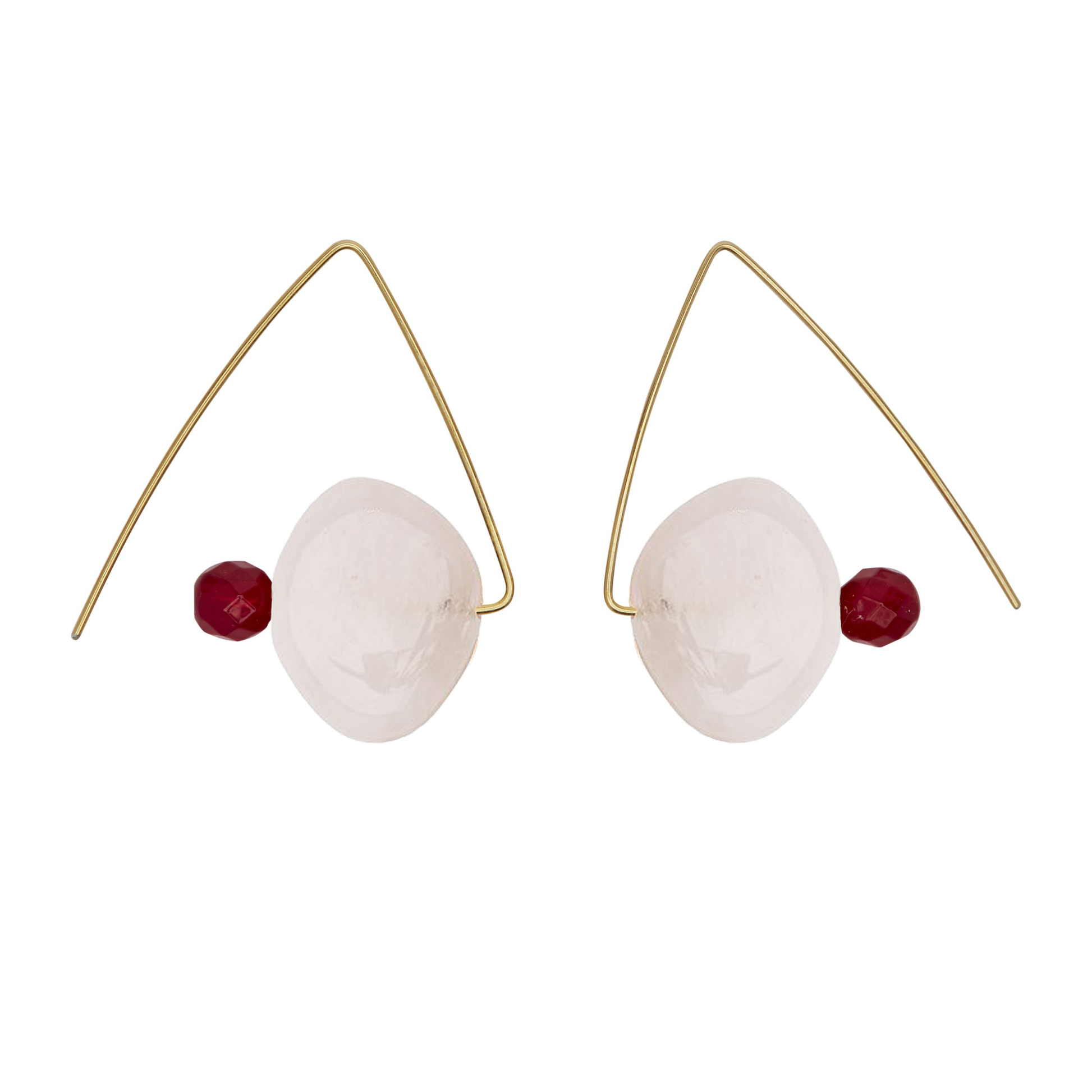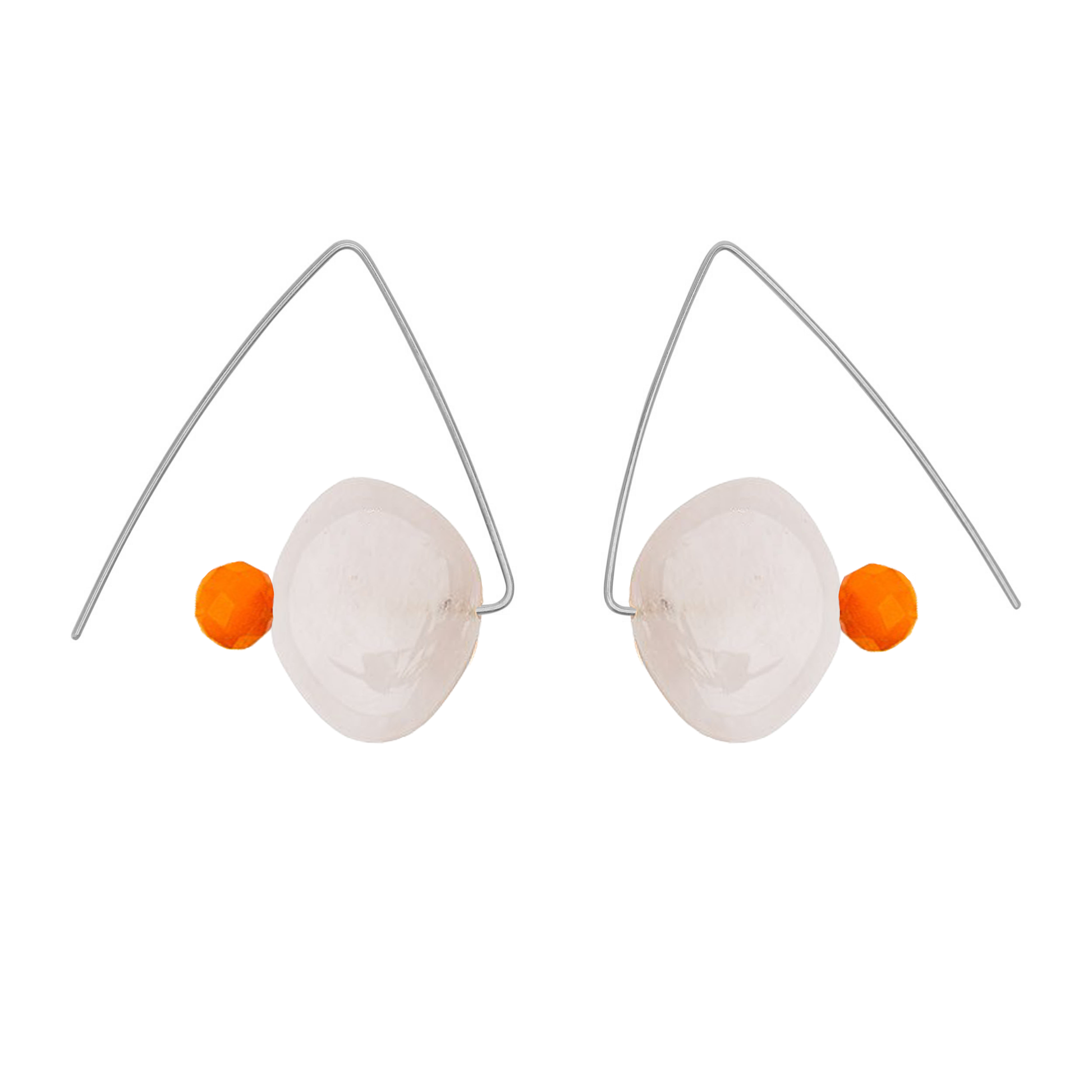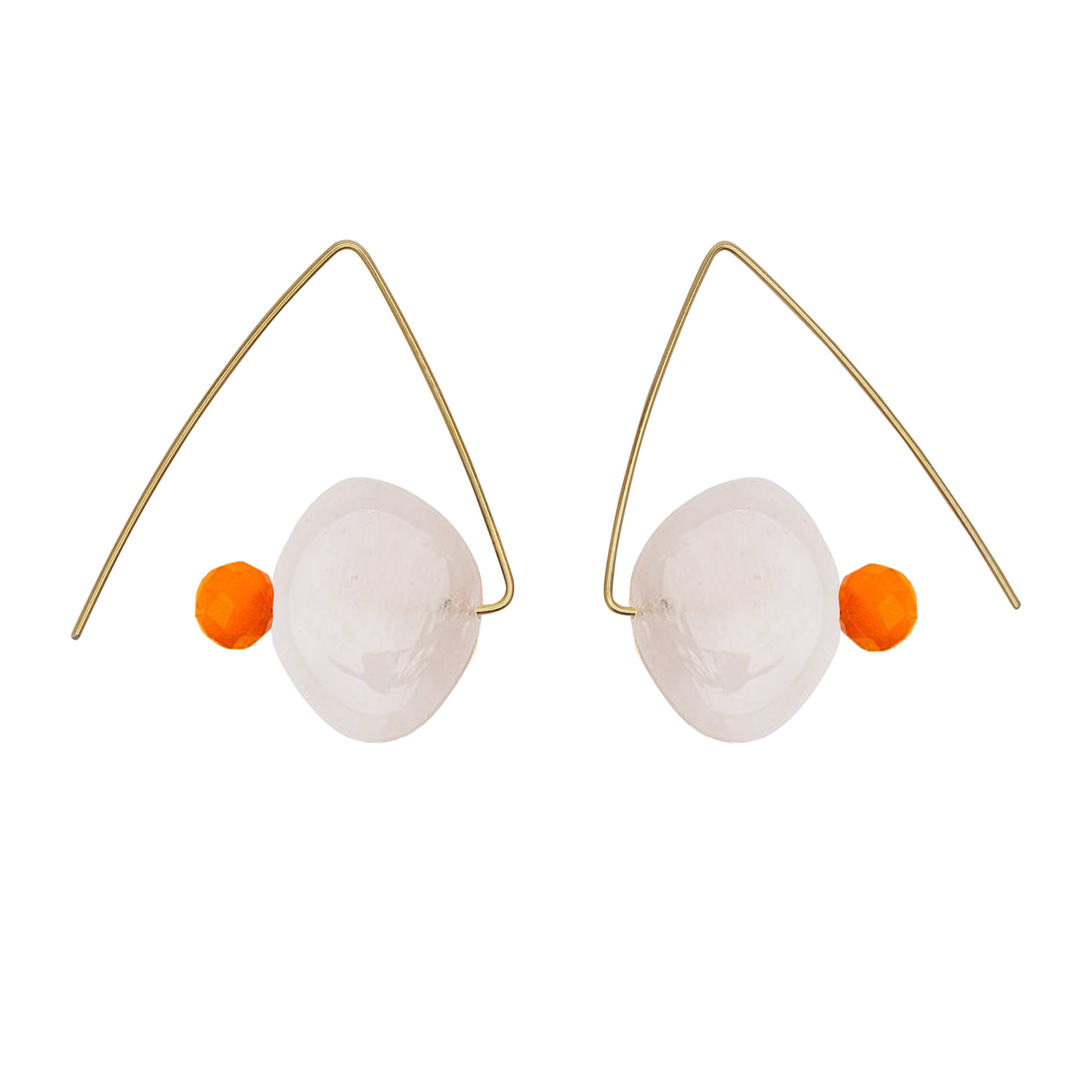 Petite Triangle Lobe Huggers with Morganite Small Oval and Round Beads