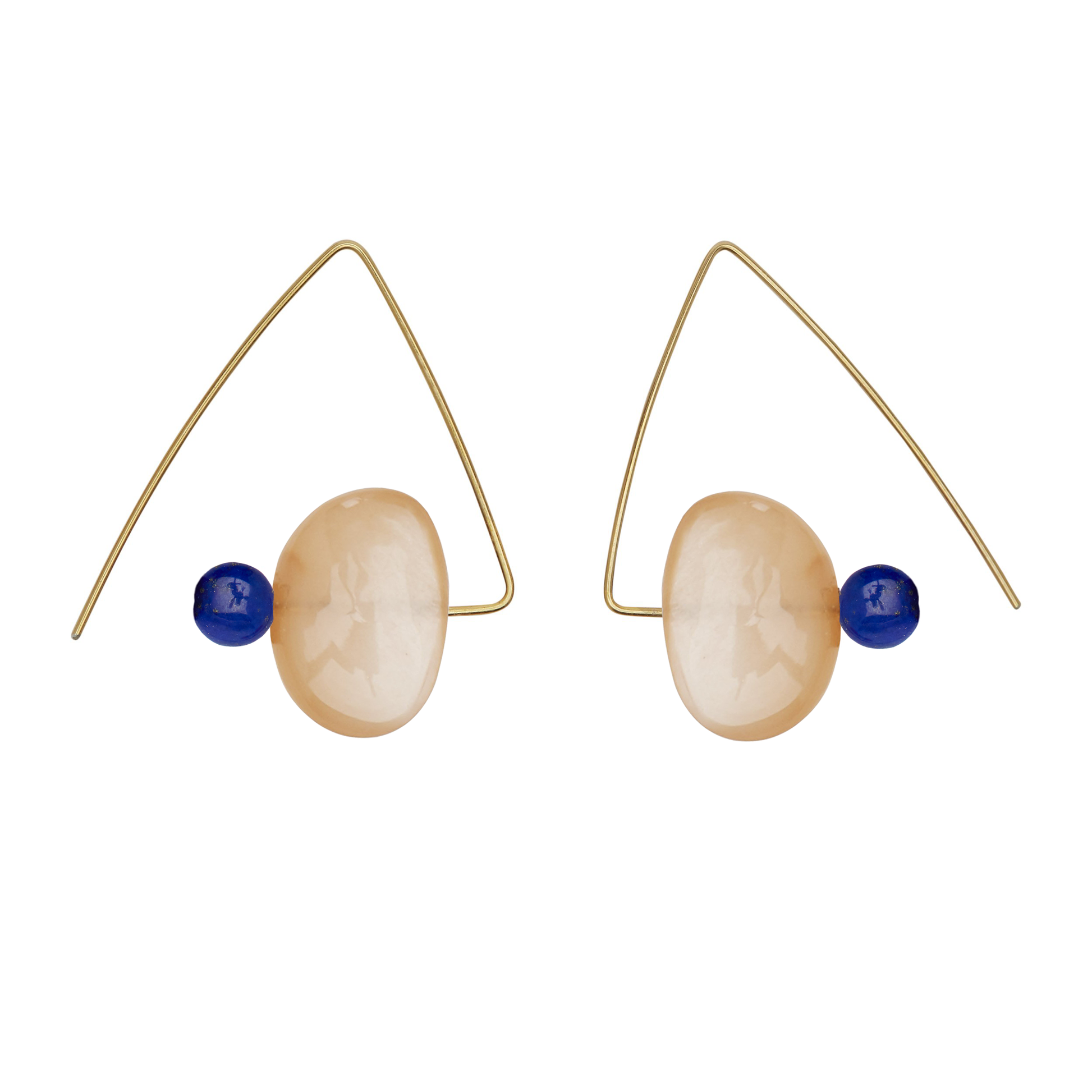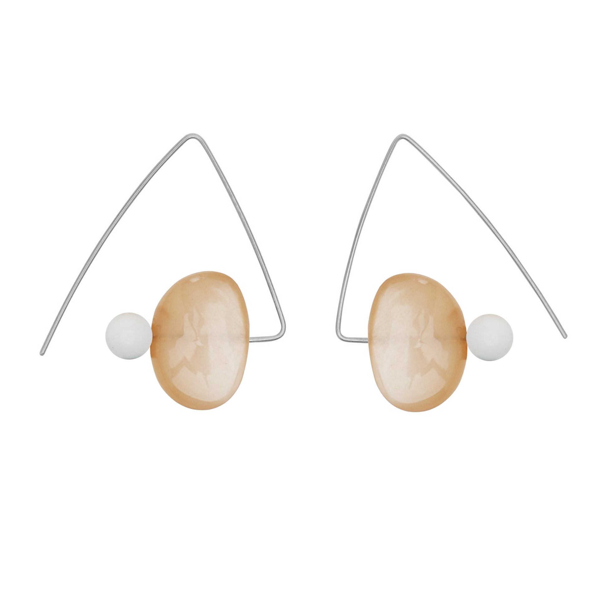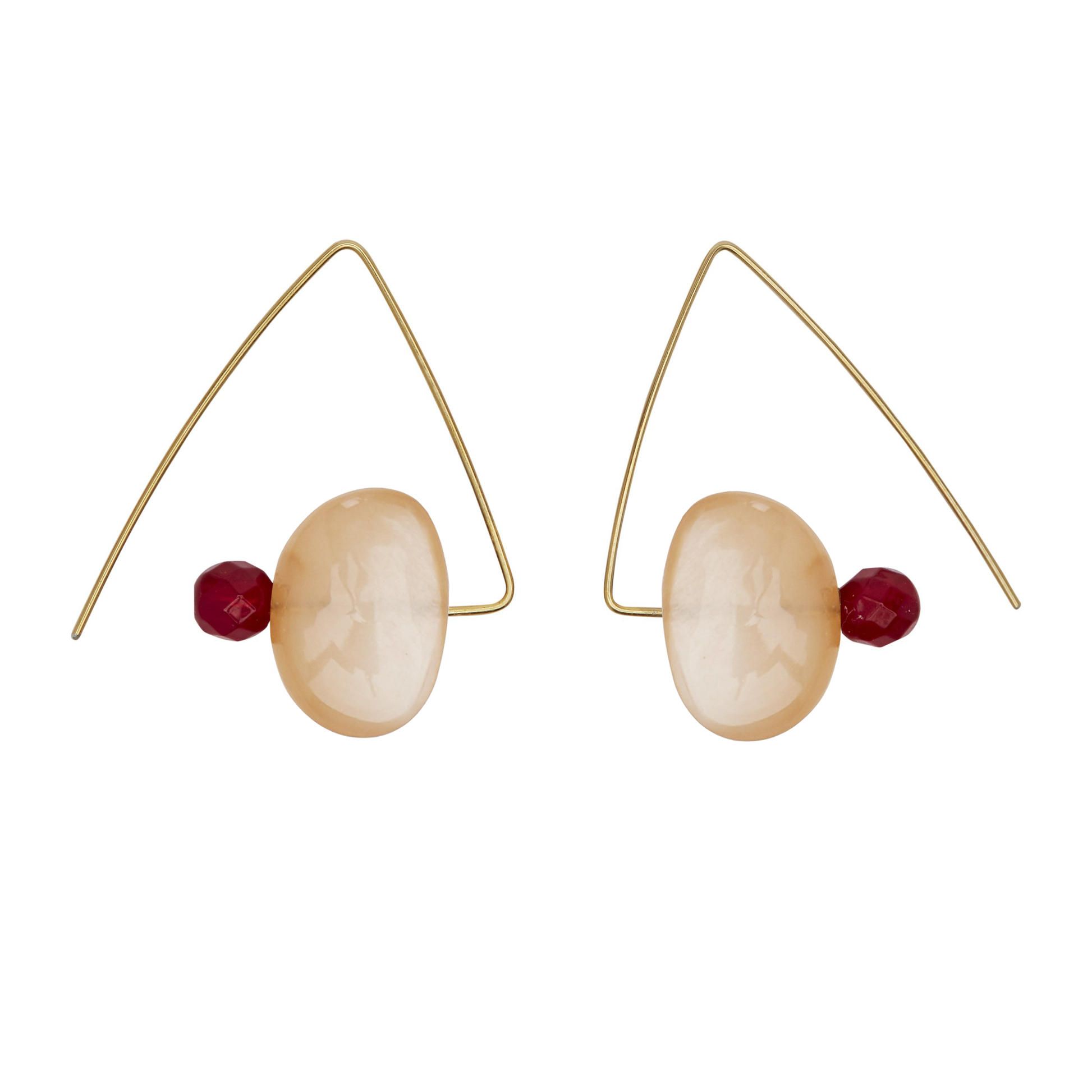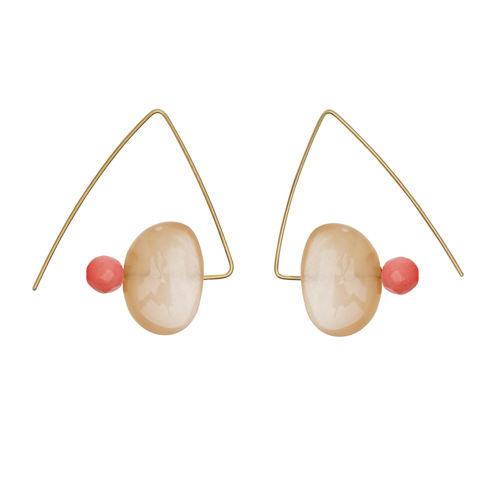 Petite Triangle Lobe Huggers with Peach Moonstone Small Oval and Round Beads