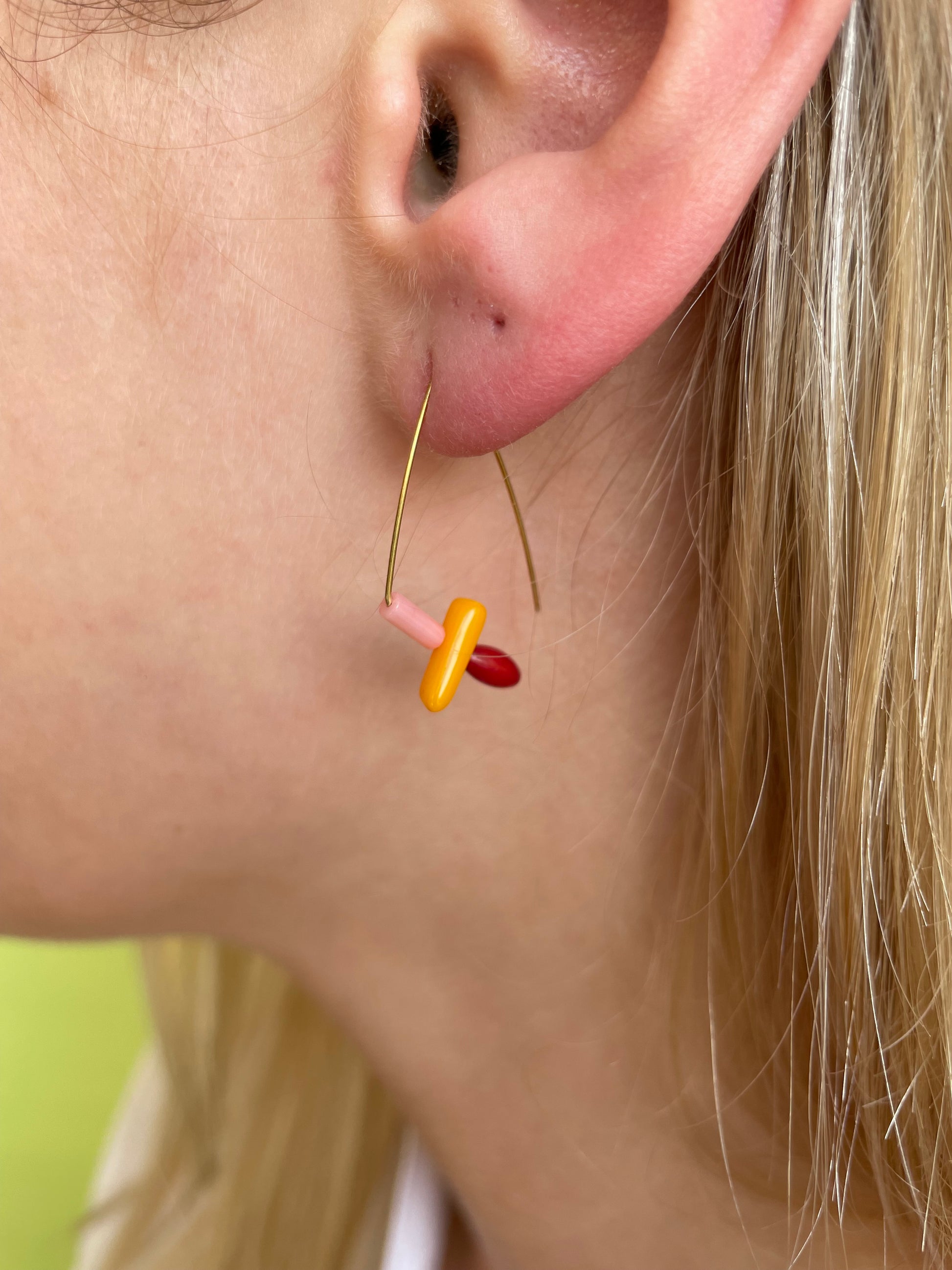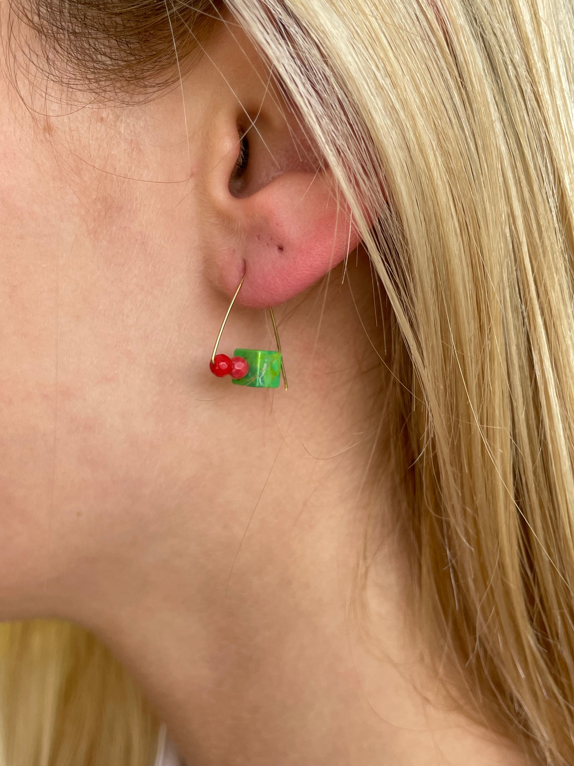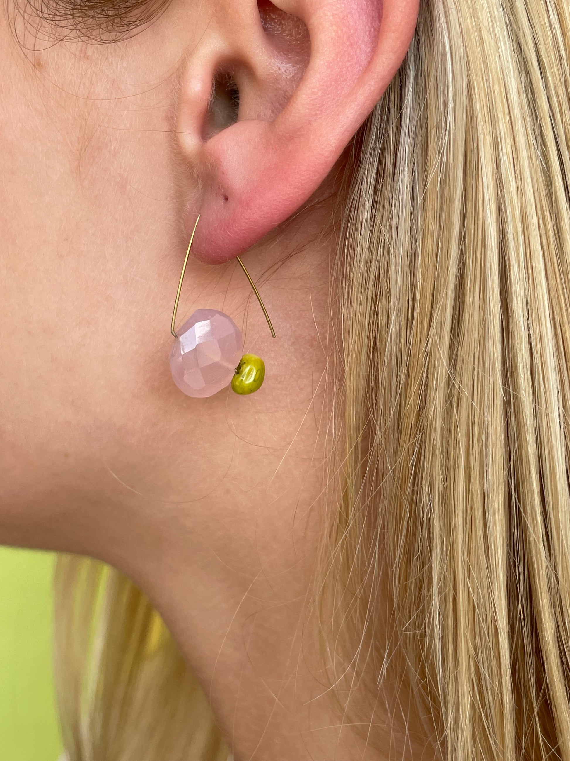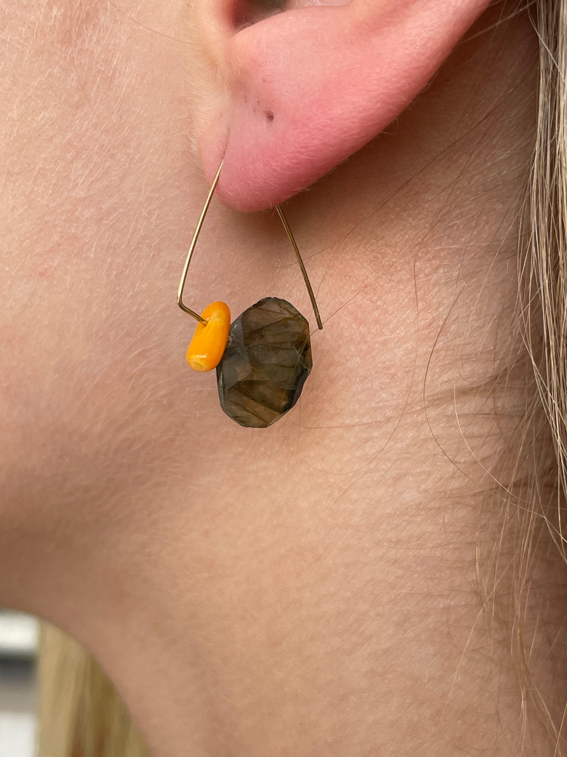 Petite Triangle Lobe Huggers with Peach Moonstone Small Oval and Round Beads