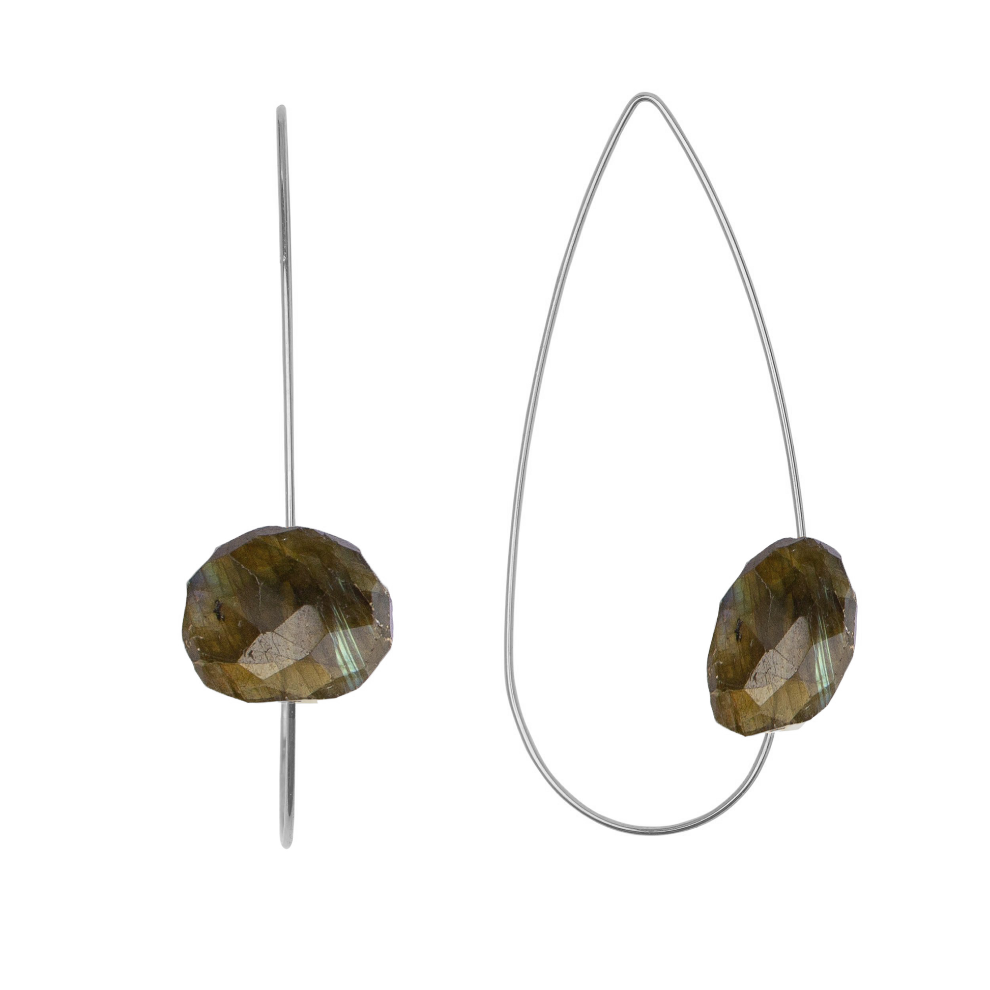 Pointed Drop Earrings with Gemstones - marvellous metallic & neutral colours