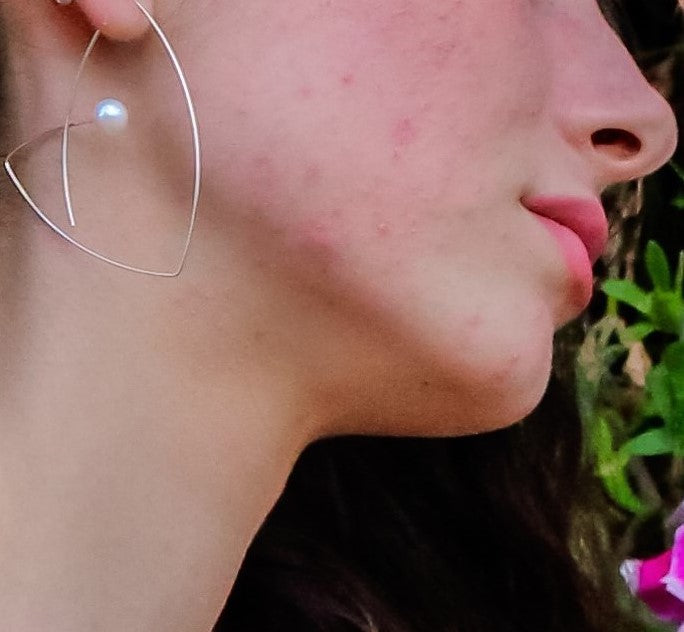 Pointed Triangle Large Earrings with Ripley Peach Freshwater Pearls