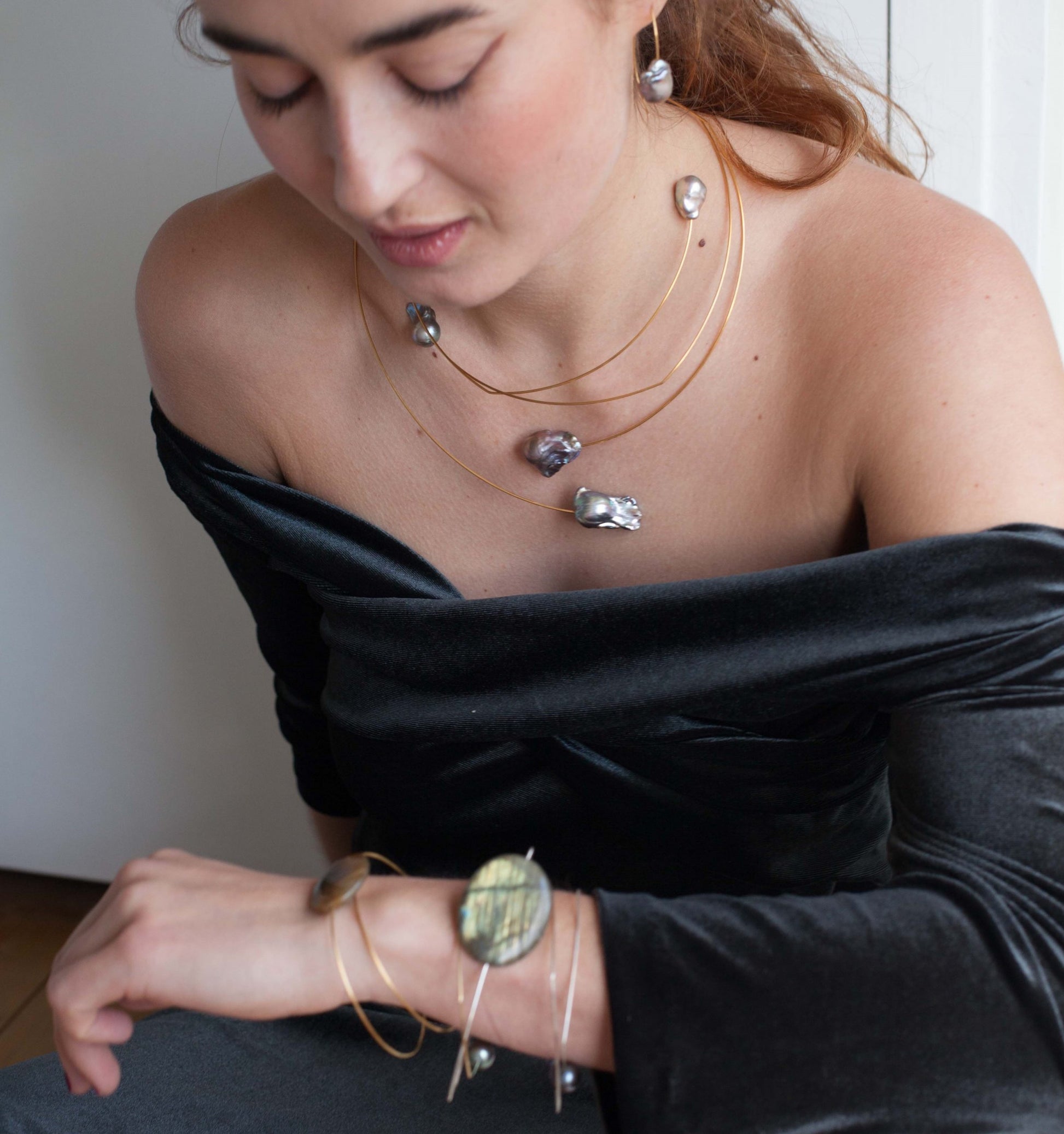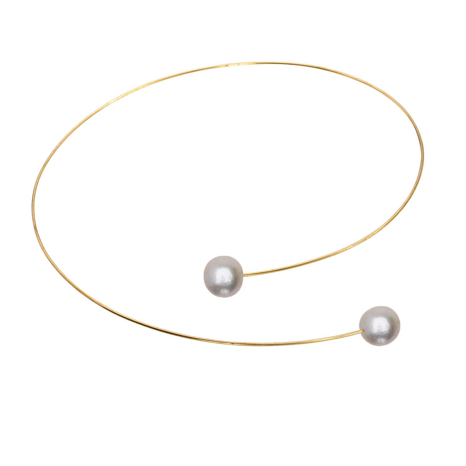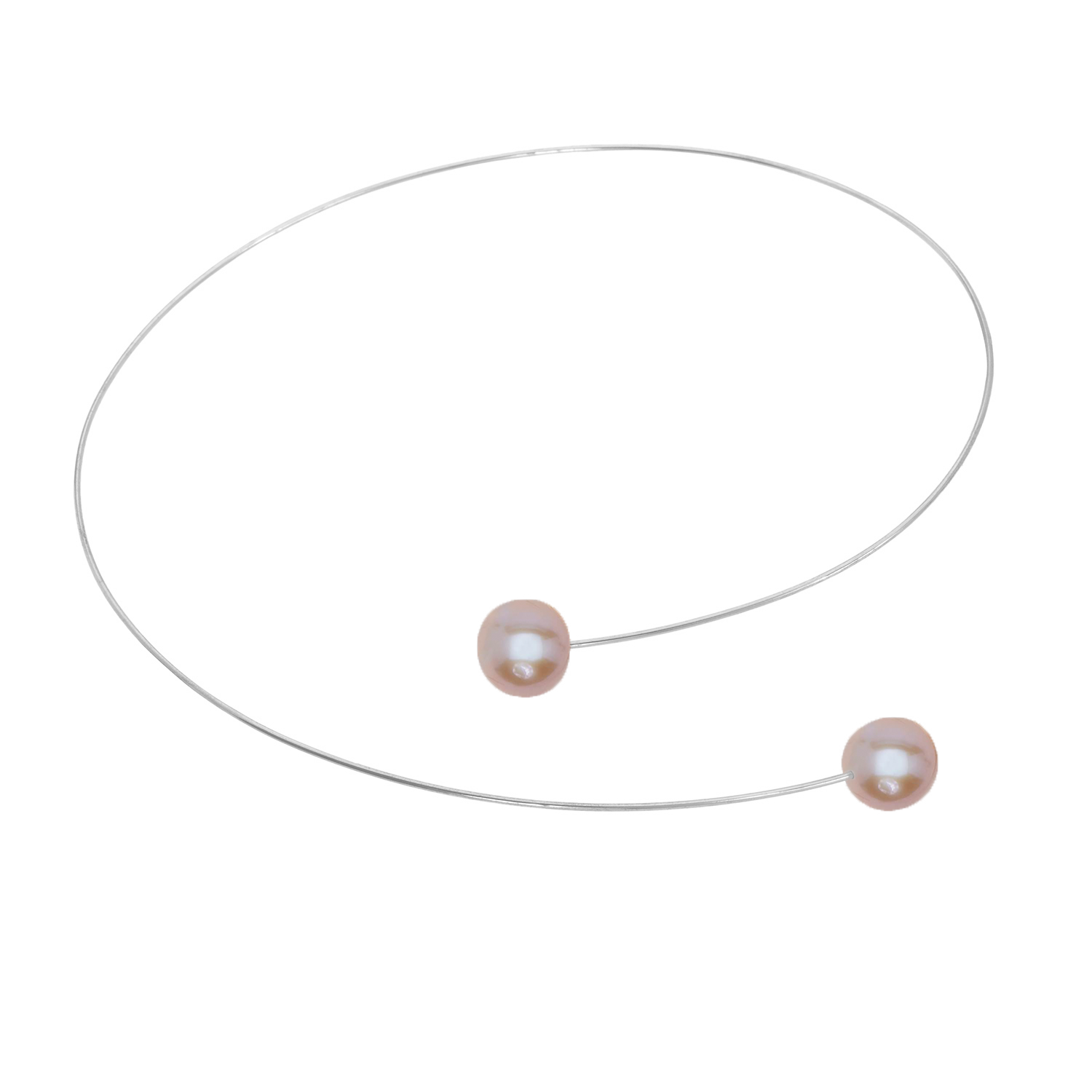 Round Asymmetric Neckwire with Round Freshwater Pearls