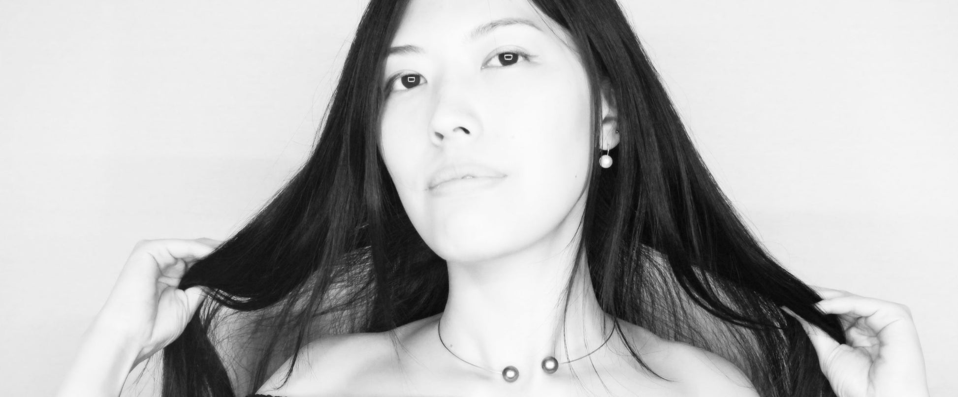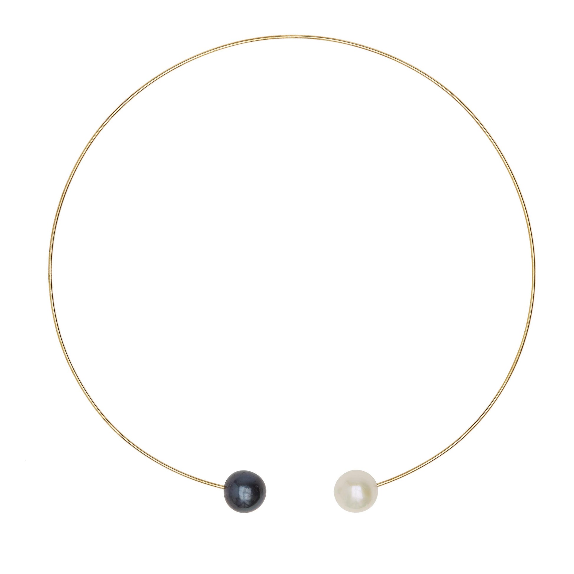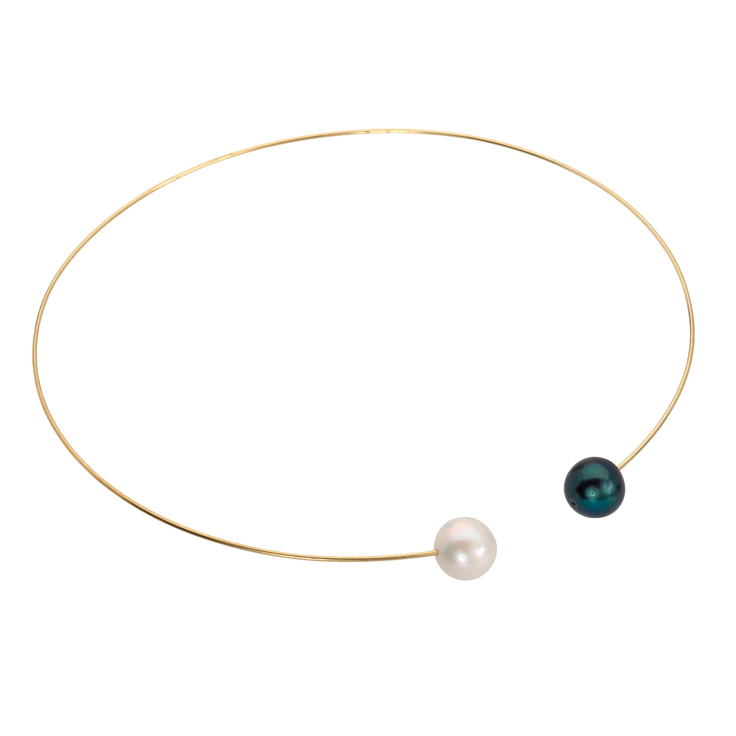 Round Neckwire with White and Peacock Black Freshwater Pearls