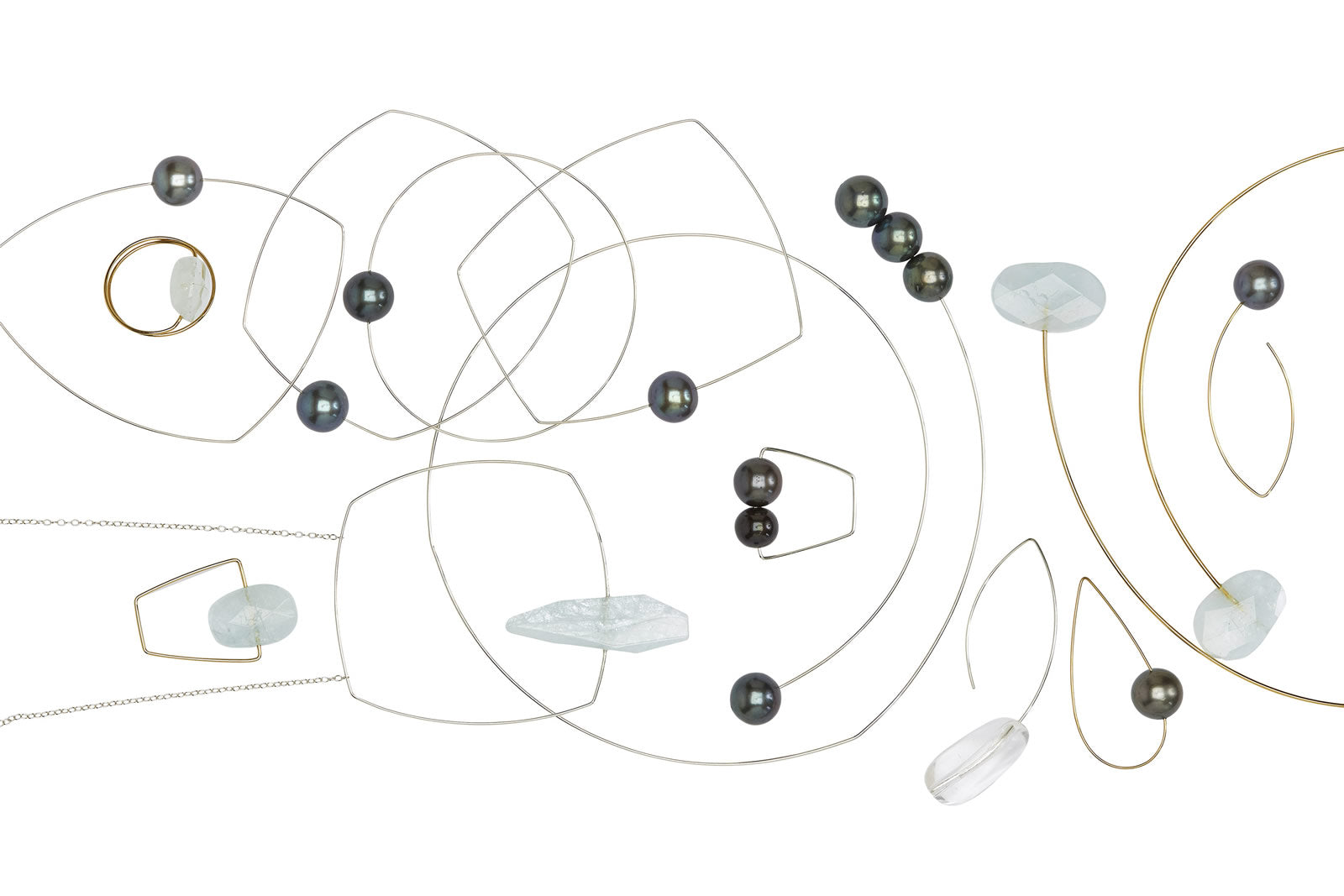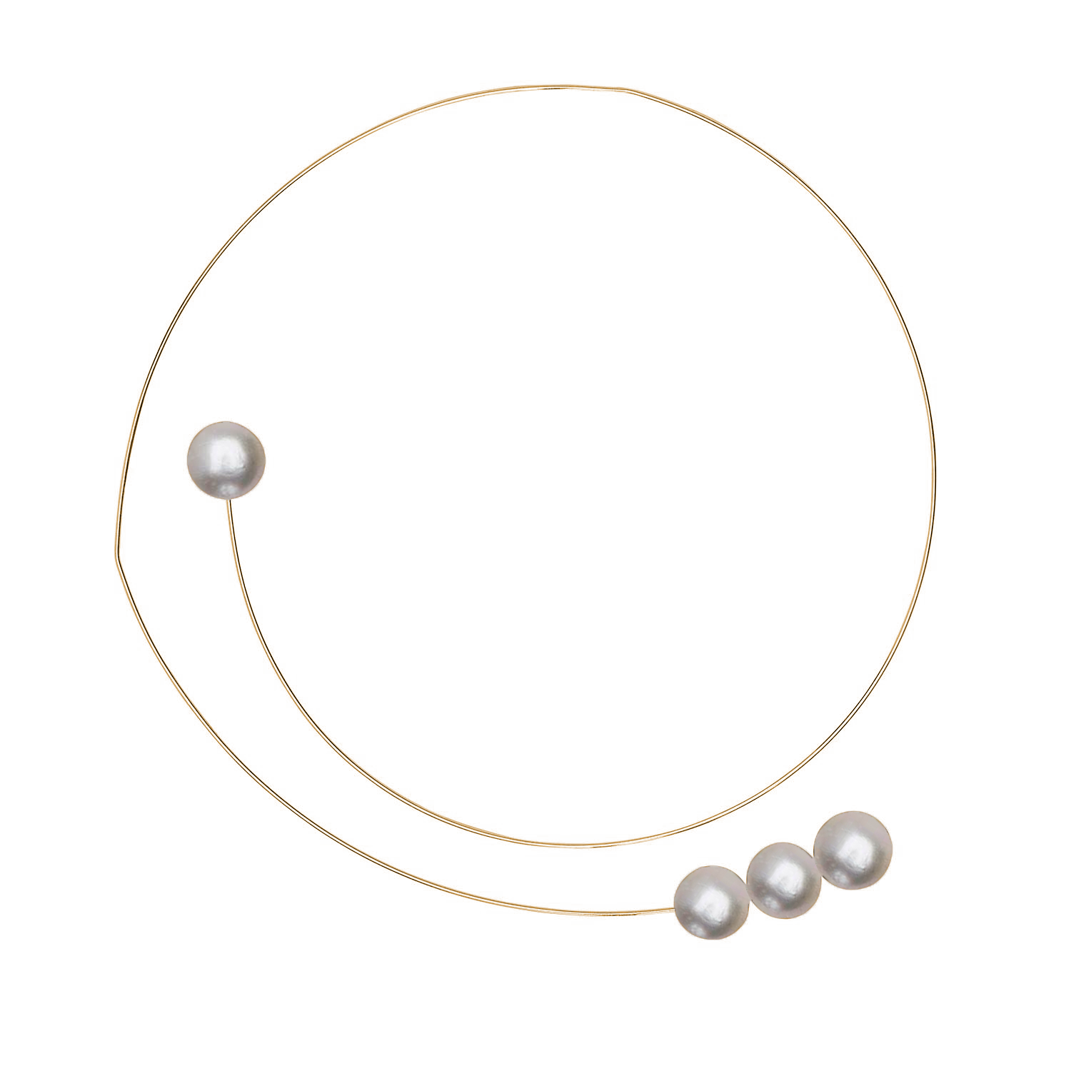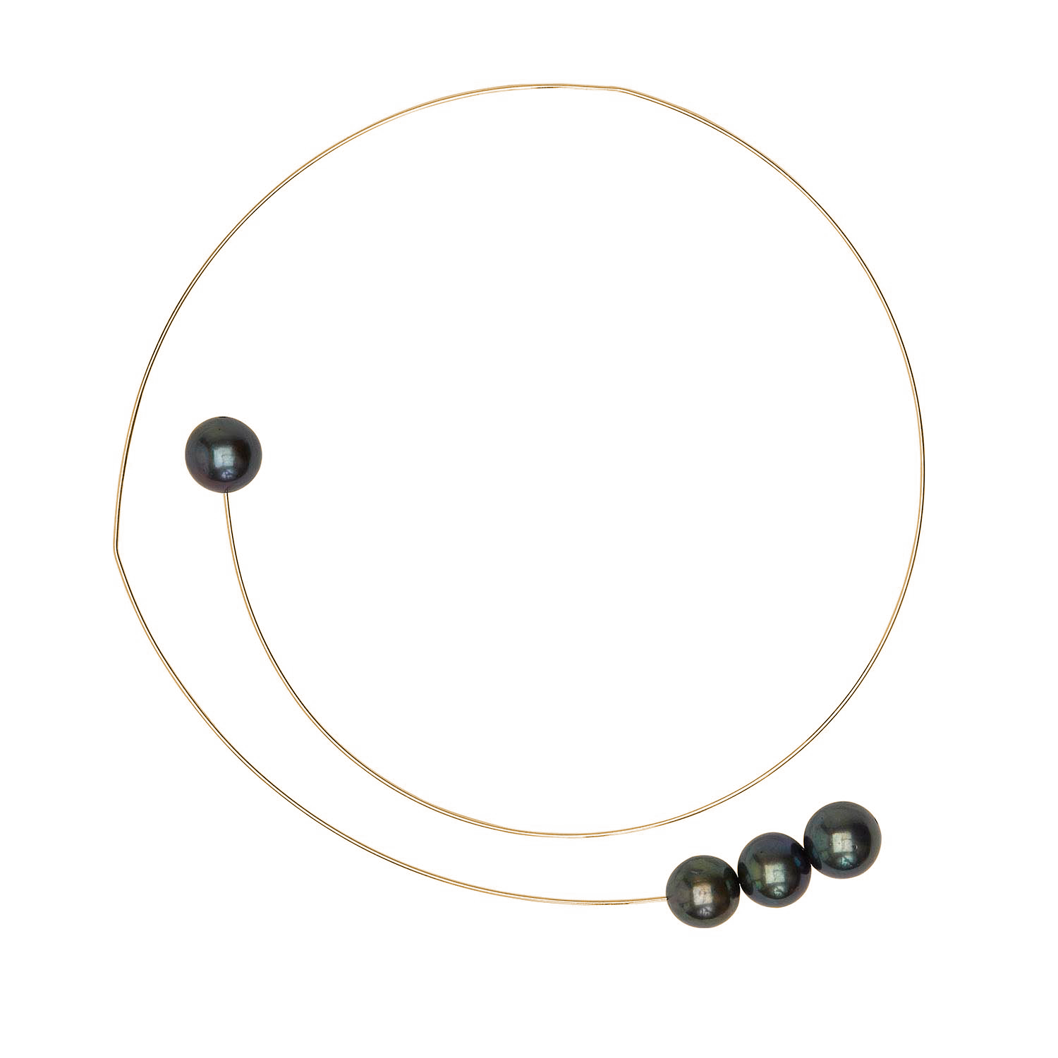 A trio of freshwater pearls sit at one end with another poised on the other side to create this striking neck wire design. Experiment wearing this bold shape at different angles - would look fantastic with a high neck top!