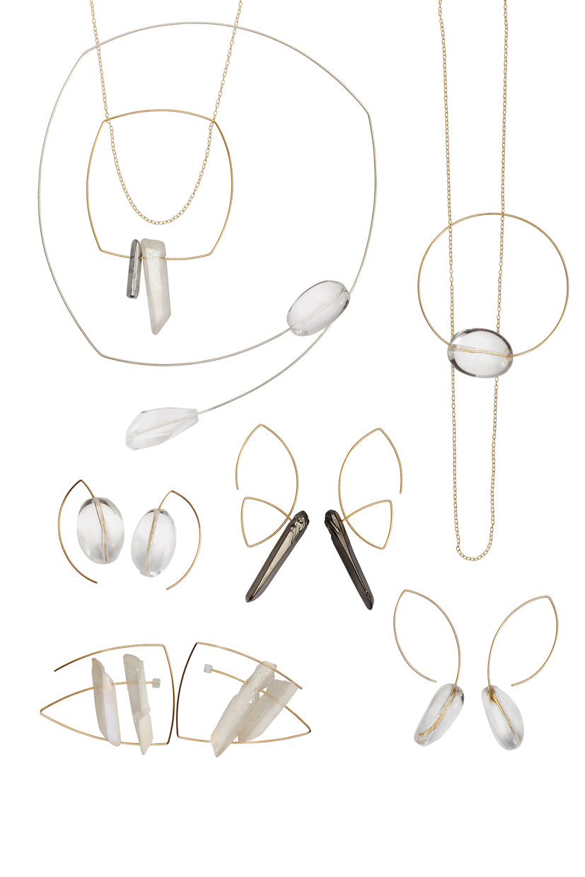 Our classic short curve style earring has been updated with nuggets of magnificent rock crystal - a pair of minimal statement earrings!