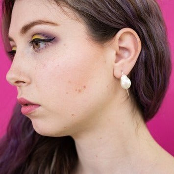 Classic MMJ design - our short curve earrings with sumptuous baroque pearls - every pair is utterly unique.