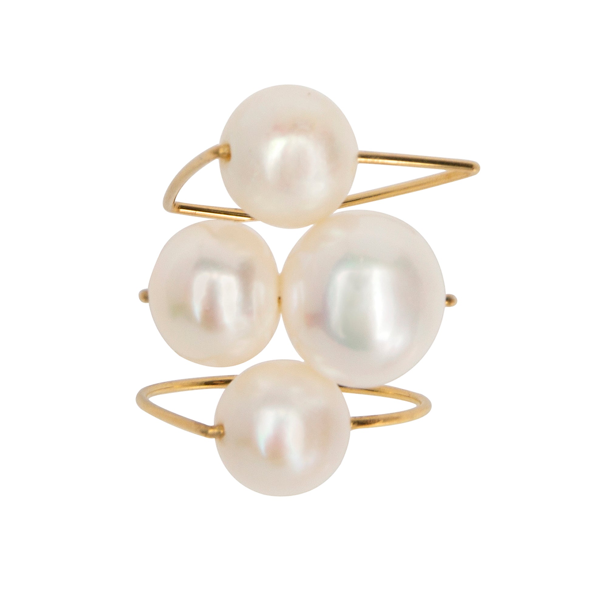 This ring measures 2.5cm in height. The pearls approximately measure 9mm and 12mm. Available in Small, Medium and Large.