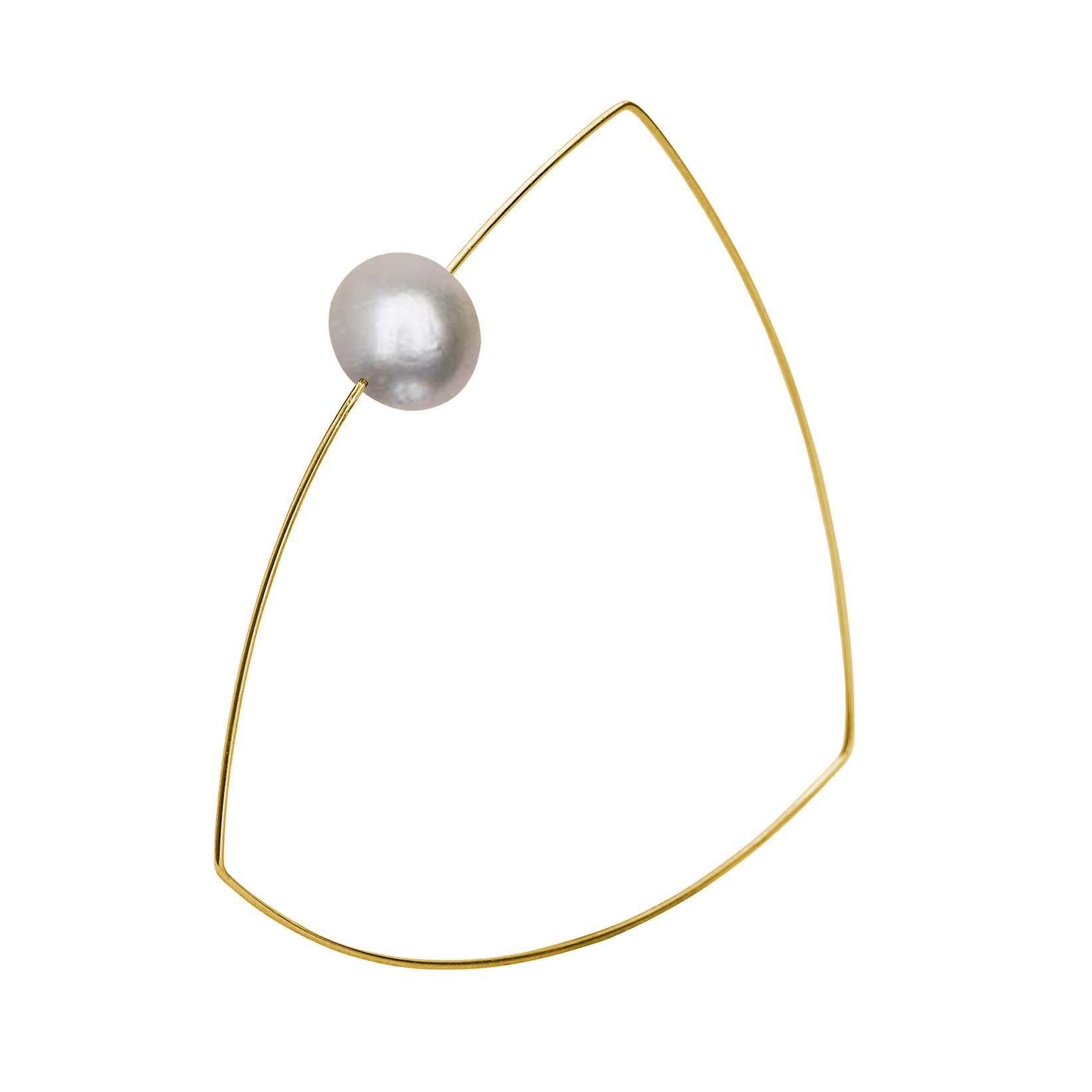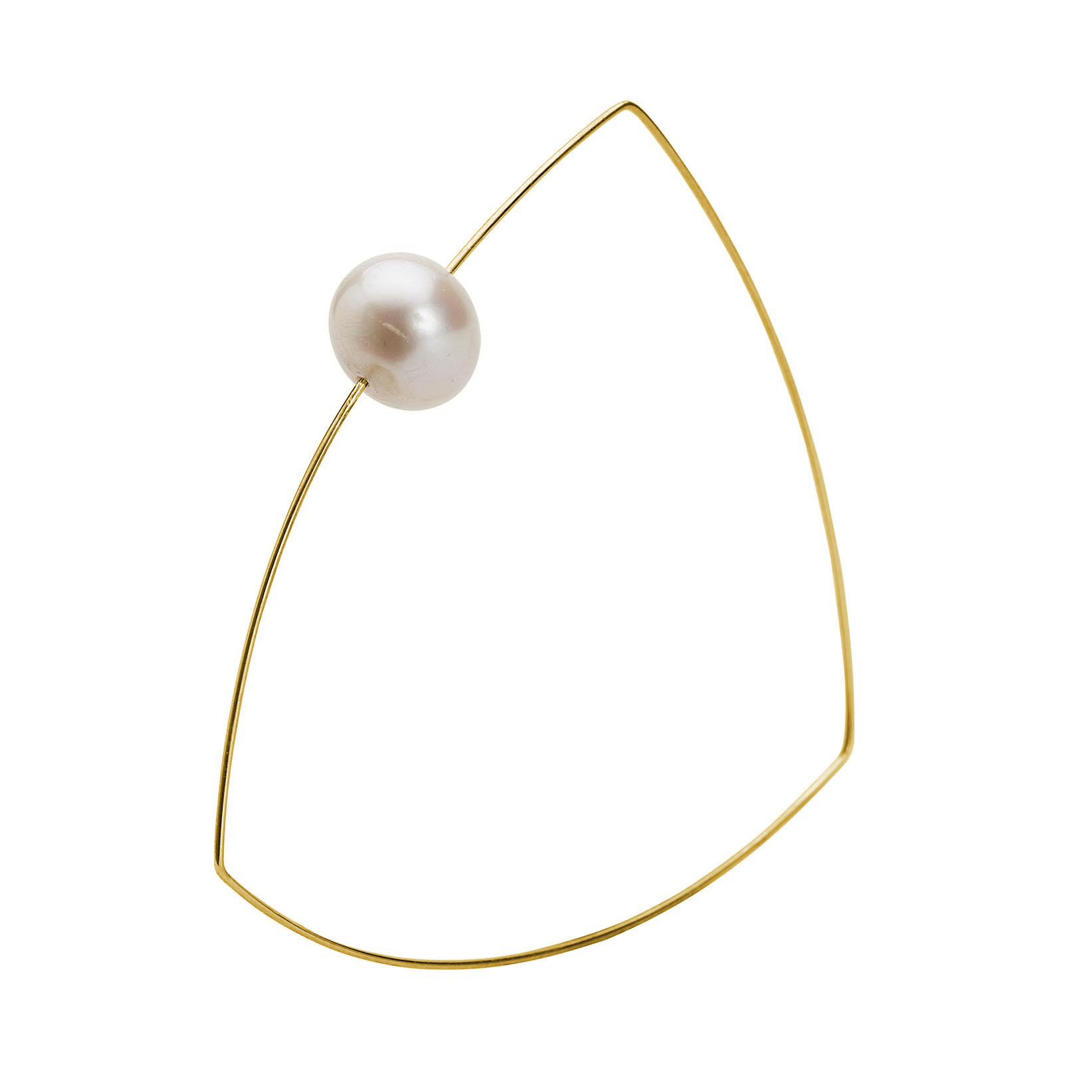 A triangular shaped bangle with a large lustrous freshwater pearl. Great on its own or stack with other bangles to create an interesting and unique look!