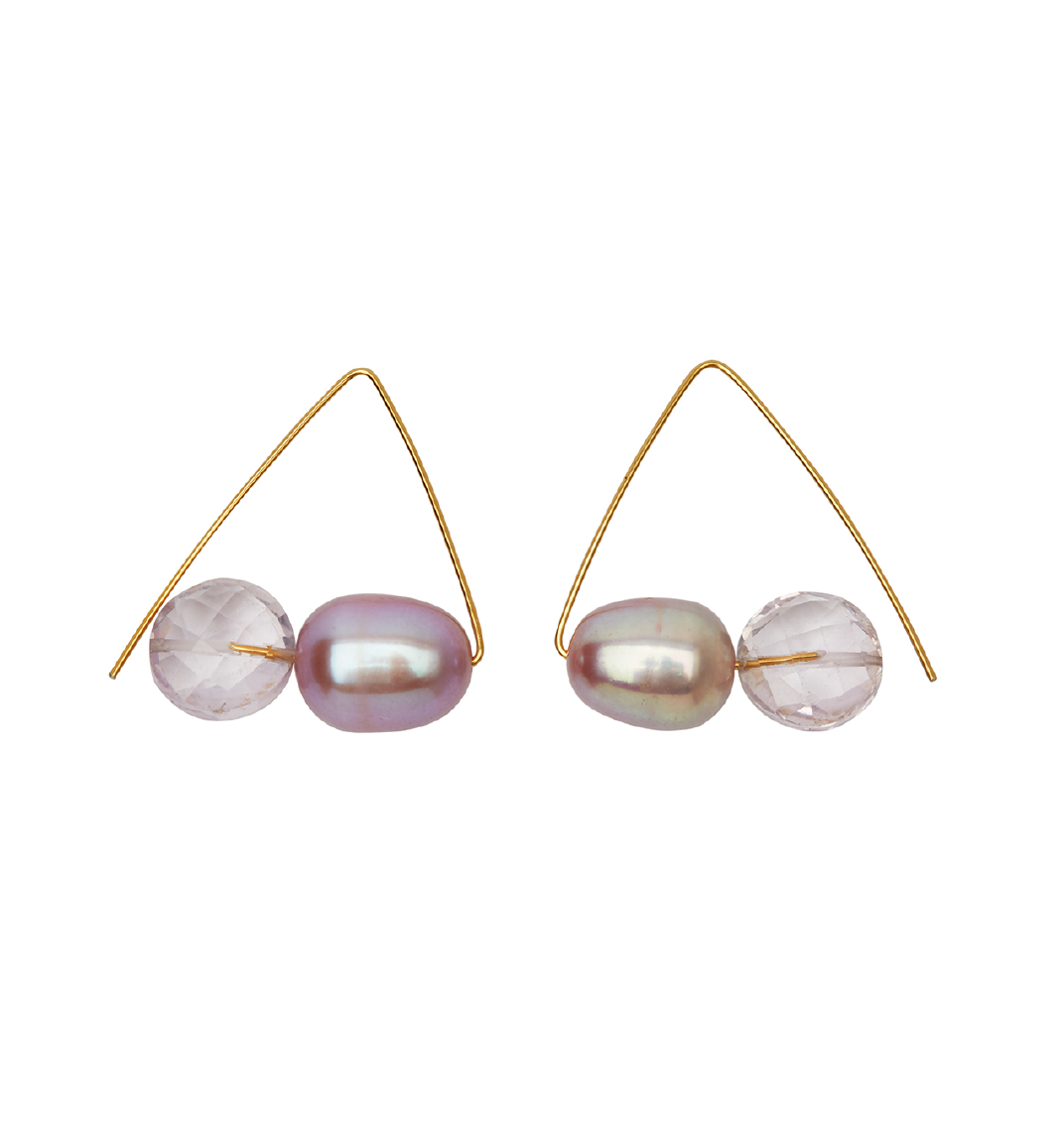 Triangle Earrings with Lavender Amethyst and Lavender Freshwater Pearls