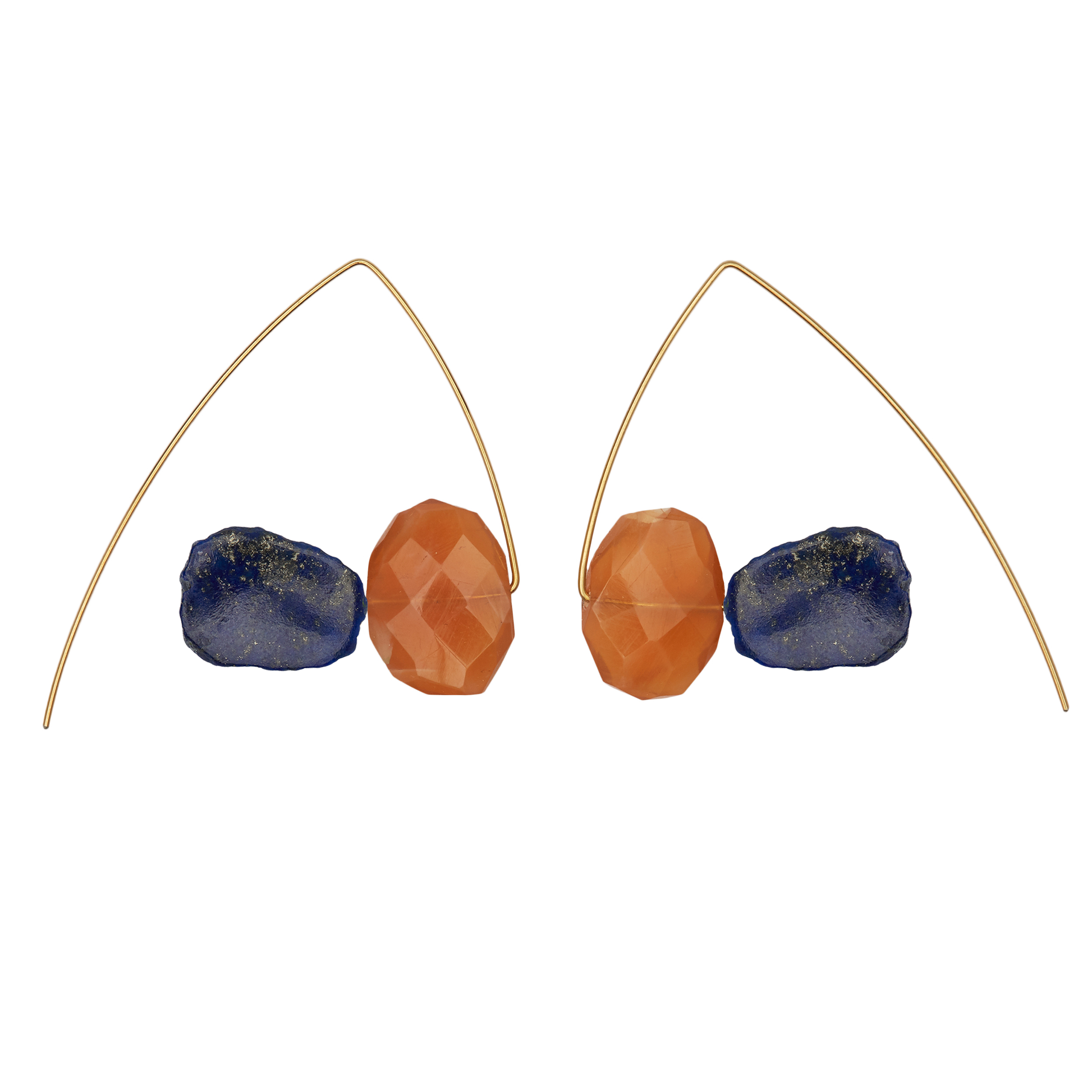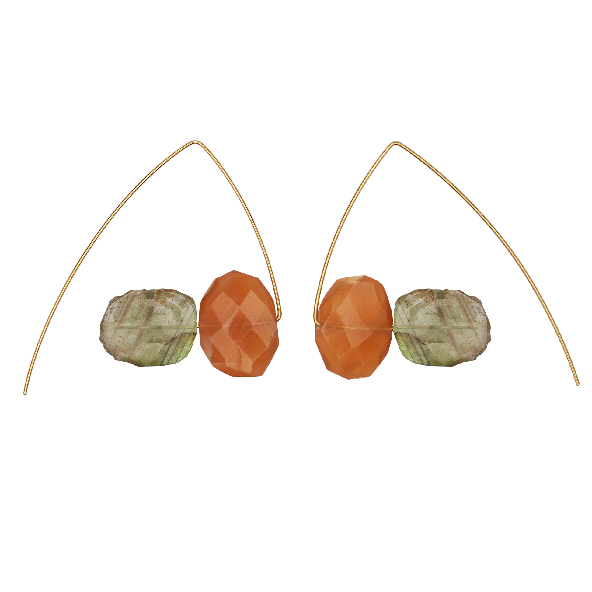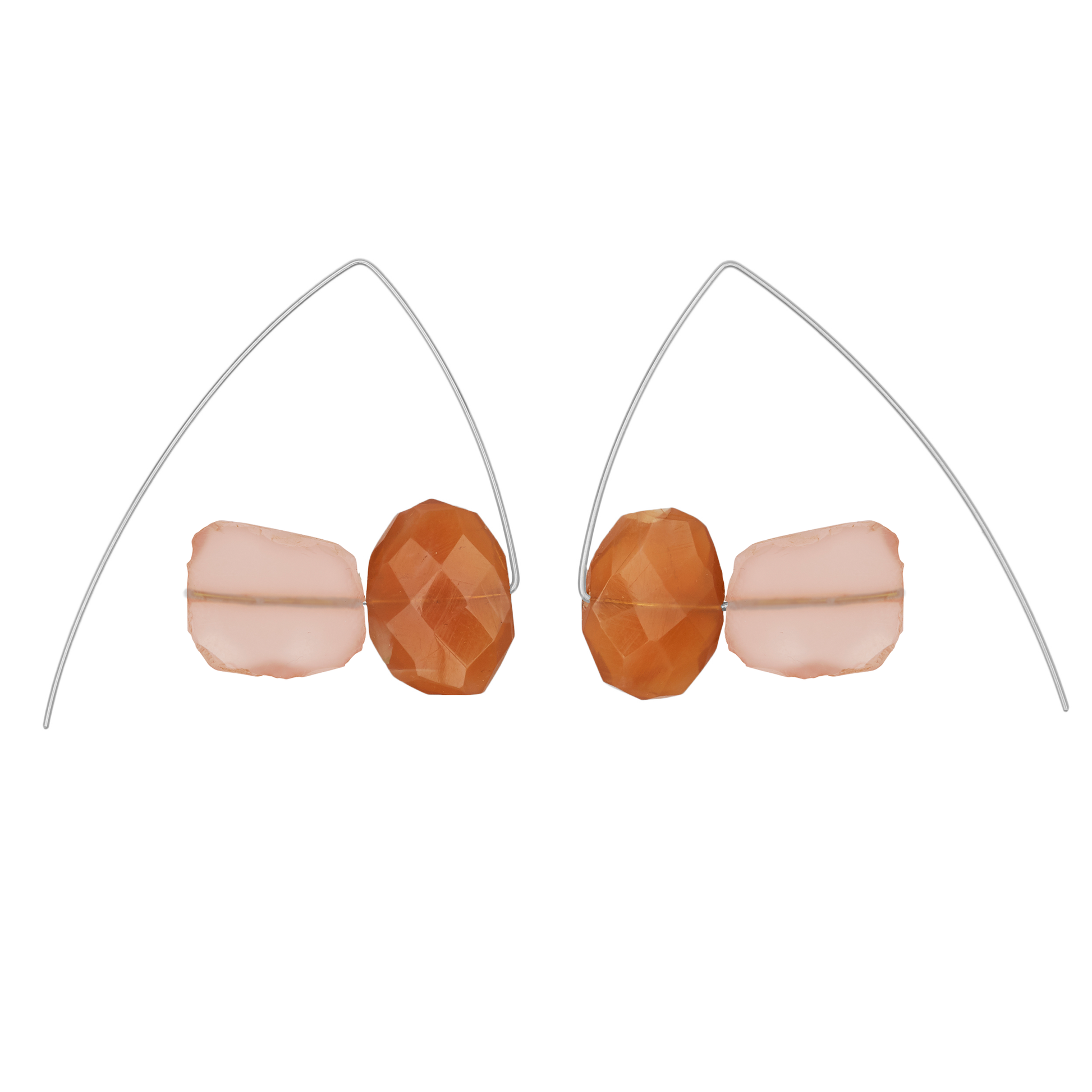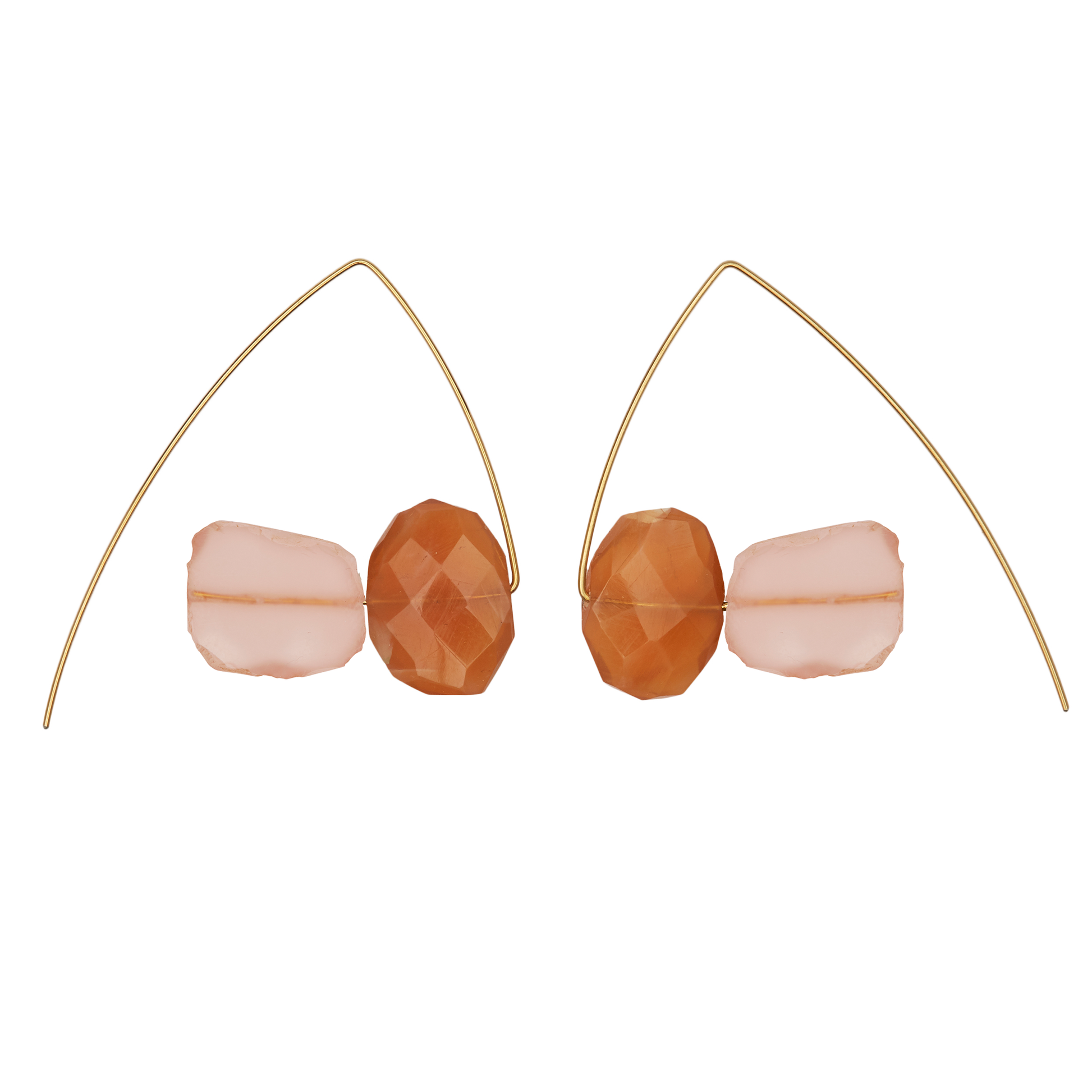 Triangle Earrings with Sliced Gems and Peach Moonstones