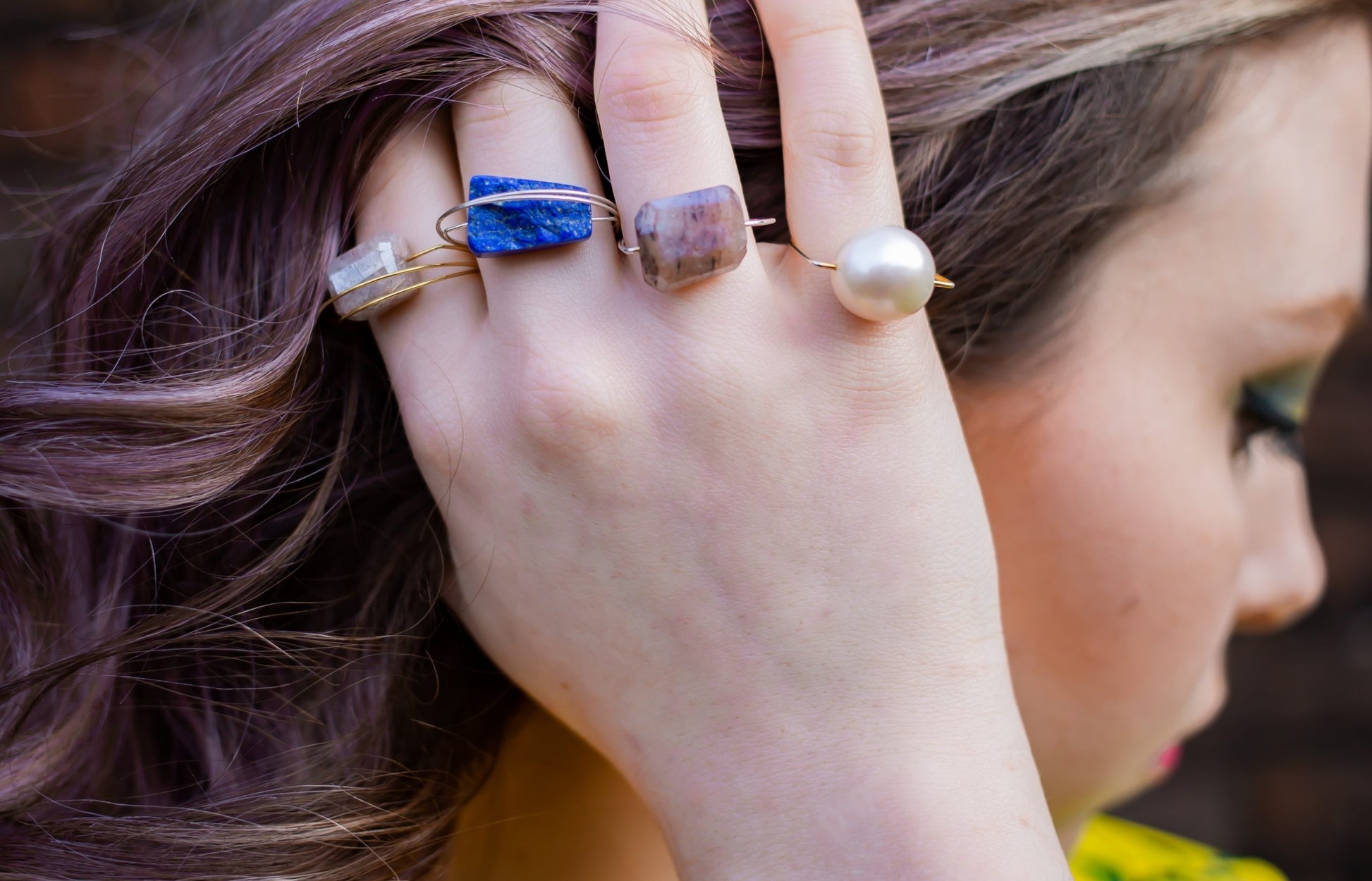 Beautiful colours inside the gems sit in this great triangular ring. Easy to wear and looks great stacked with other rings!