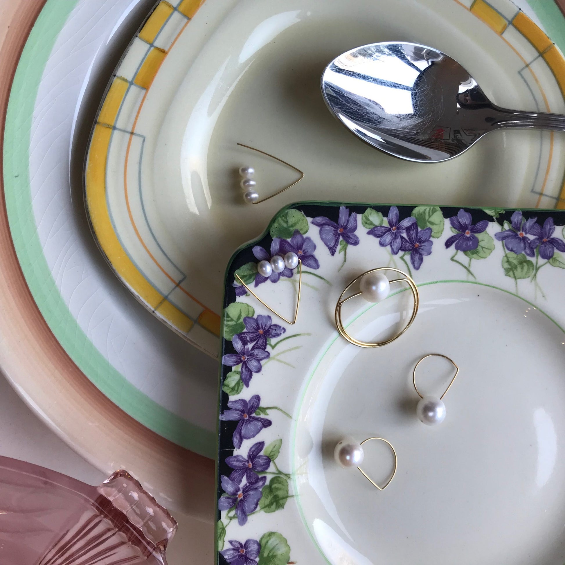 Triangle Ring with Peach Ripley Baroque or Freshwater Pearl (12mm)