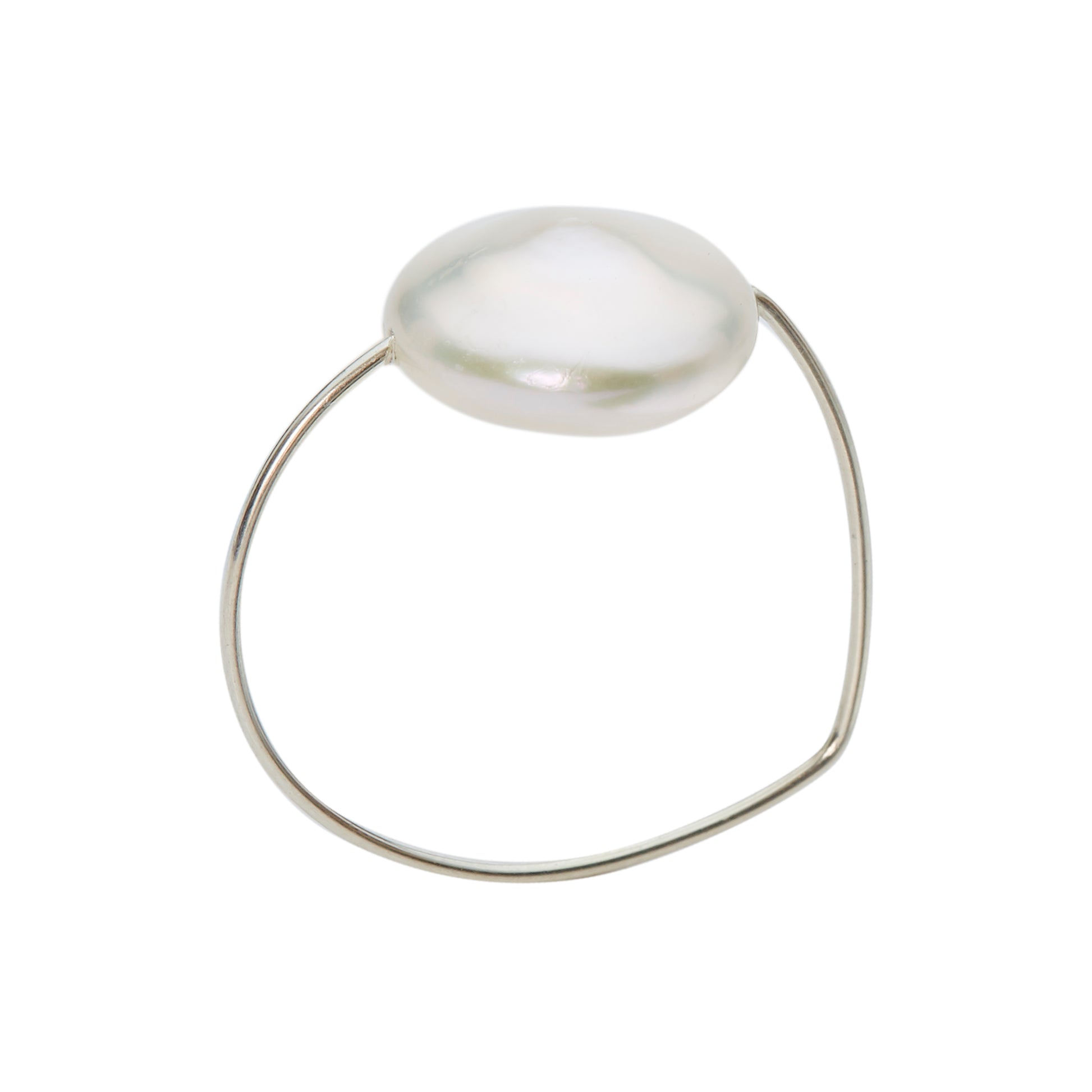 Triangle Ring with White Fresh Water Pearl Coin