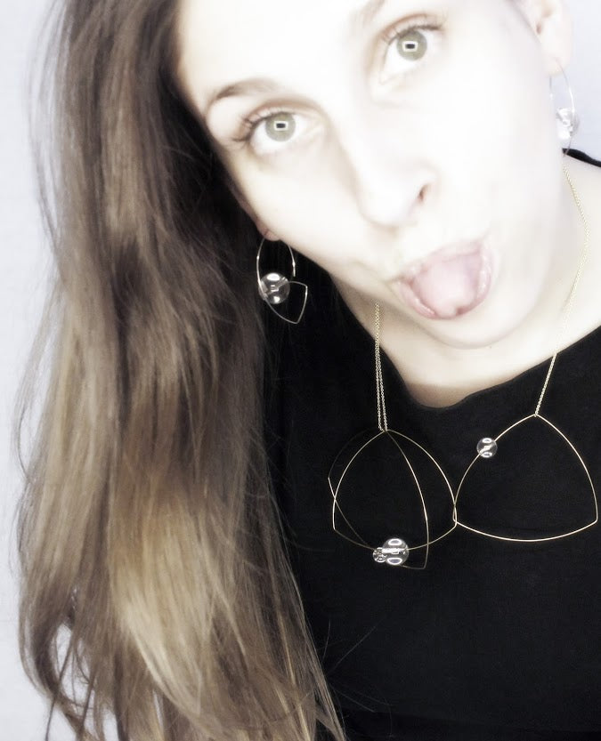 Gorgeous gems perch on these small pointed loops – a unique geometric shaped pair of earrings!